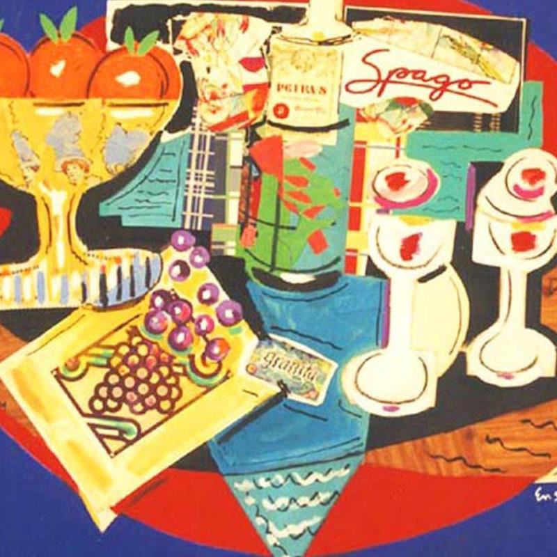 "Still Life with Petrus Wine Label" is an original Mixed Media on stretched canvas by Wayne Ensrud. The piece is hand signed by the artist and comes with a Certificate of Authenticity. Measures approximately 36" x 46".