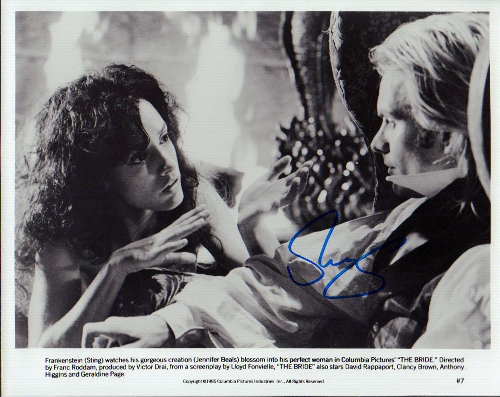 Black and white 8x10 press photo from the film The Bride signed by Sting. All items come with a certificate of authenticity good for the life of the piece.