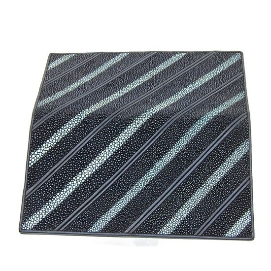 Well made; hand-dyed brand new Stingray Hide black unisex checkbook wallet. 7" x 4" x .5" when folded. Multiple dividers and a smaller zippered section inside and one with multiple bill and card dividers. $345 retail - A truly unique accoutrement!