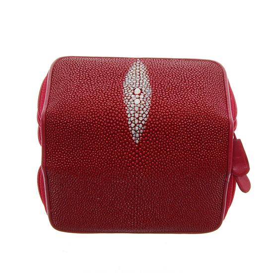 Excellent well crafted and new stingray hide piece; 2 zippered sections; keys and credit cards one side; divided coin/folded currency section on the other side; 4" x 2.75" x 1.25"; $125 retail