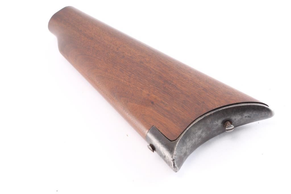 With Winchester style crescent buttplate. Lightly refinished to very good condition. Unknown model.