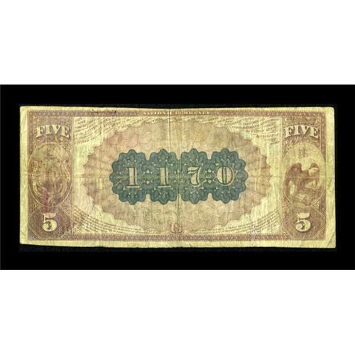 <B>Stockbridge, MA</B></I> - $5 1882 Brown Back Fr. 467 <B>The Housatonic NB</B></I> Ch. # 1170<BR> This $5 Brown Back is of the earlier variety with the inside plate letters, the dark charter numbers in the frame line, and the stacked Treasury signatures. Dark penned signed <B>Fine</B></I>.<BR><BR><b>Shipping:</b> Coins & Currency (<a target="_blank" href="http://www.heritageauctions.com/common/shipping.php">view shipping information</a>)