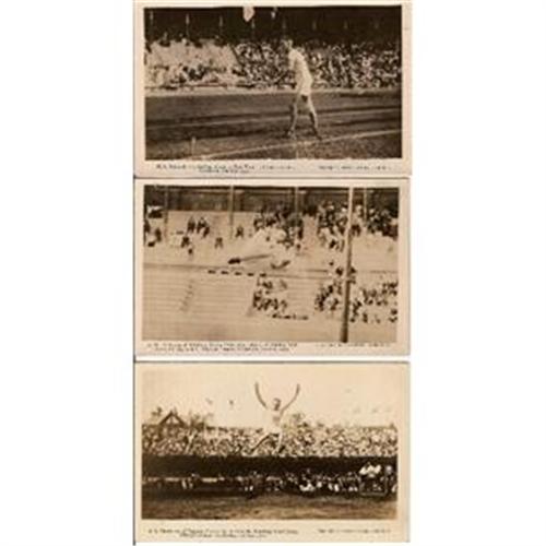Three (3) real photograph postcards of American athletes winning gold medals for