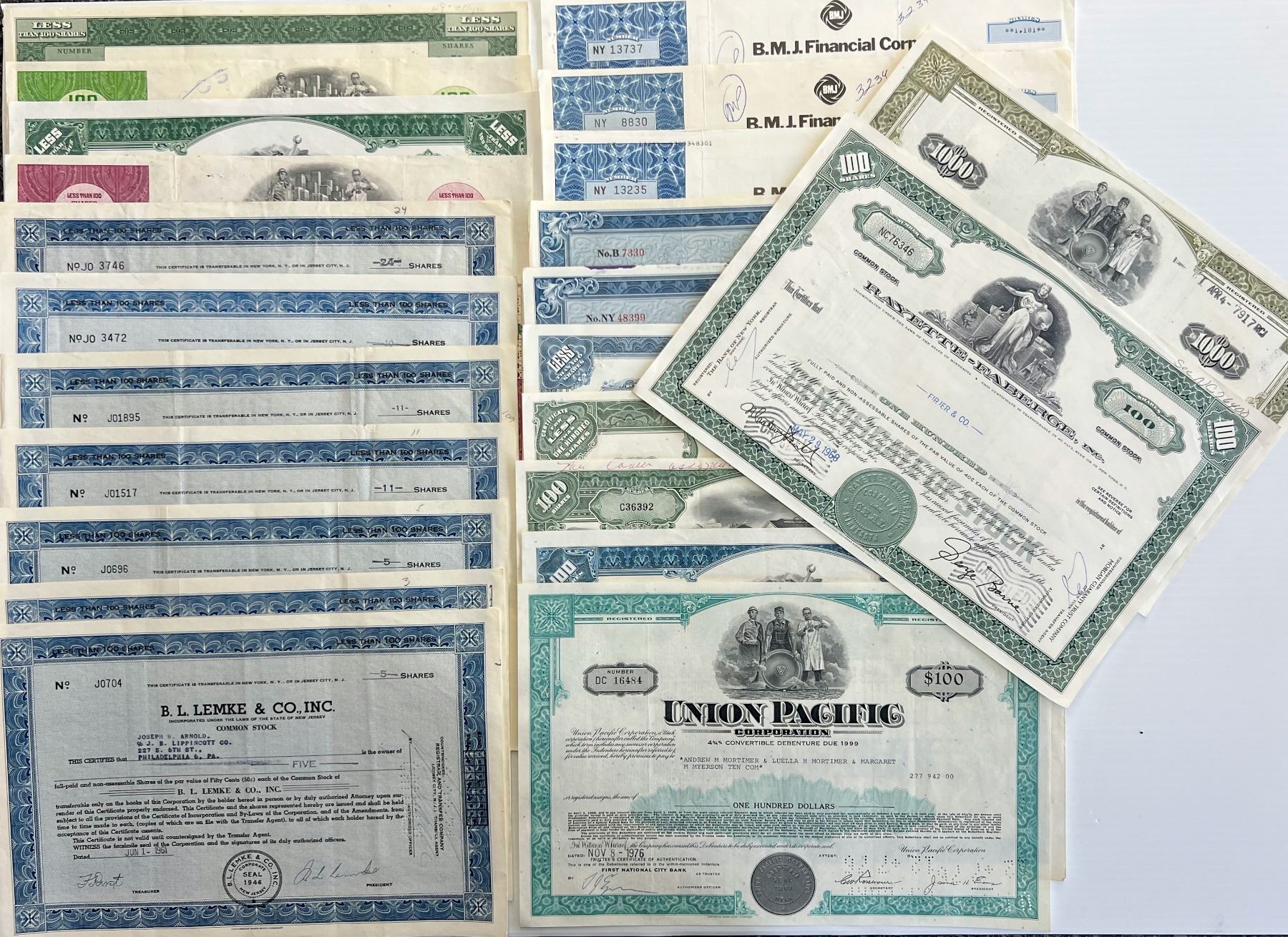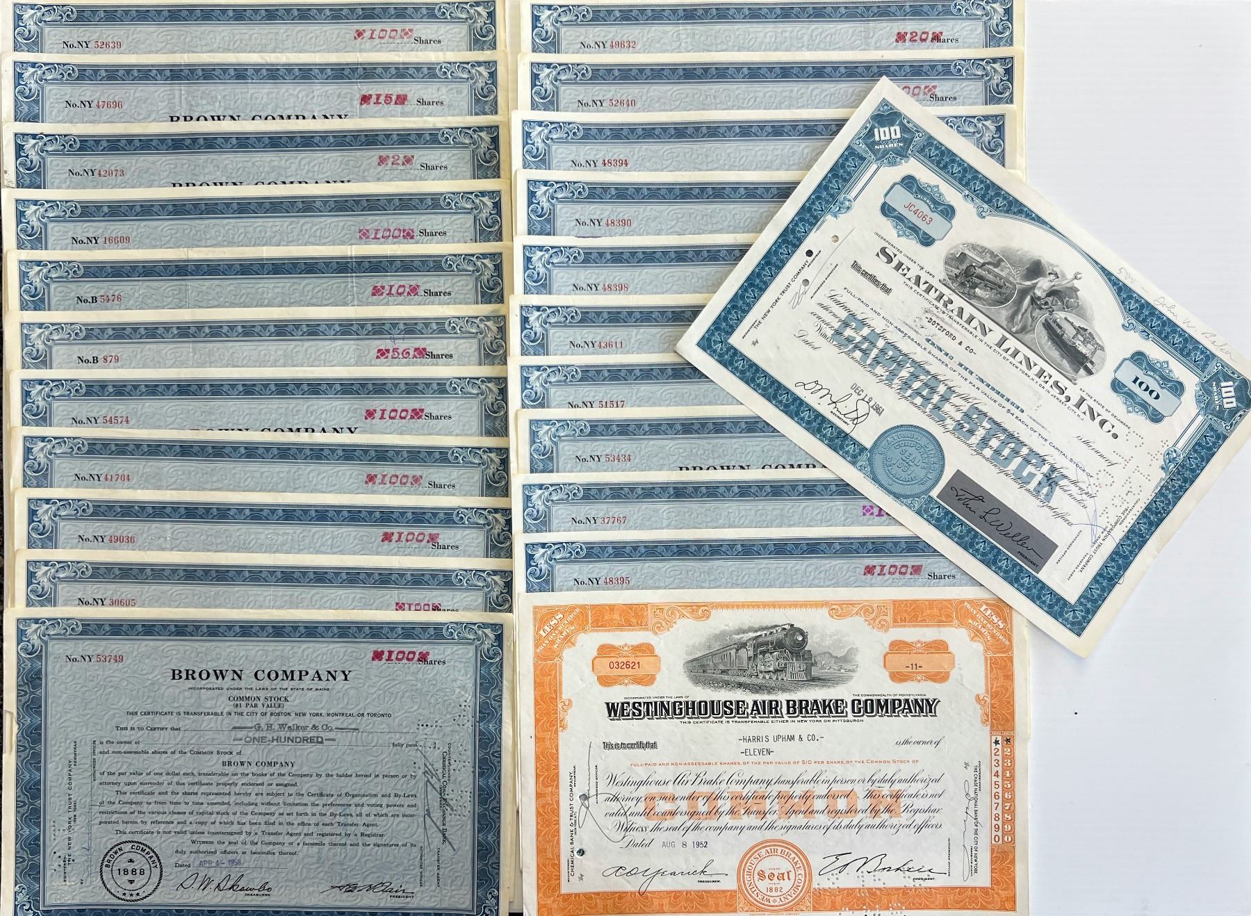 Stocks & Bonds; Lot of 59 various North American issues.