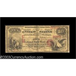 <TABLE cellSpacing=0 cellPadding=0 width="100%" bgColor=#000000 border=0><TBODY> <TR><TD width="100%"><TABLE cellSpacing=1 cellPadding=3 width="100%" border=0><TBODY><TR><TD width="100%" bgColor=#79735c><FONT face=arial color=#ffffff size=3><B>Description</B> </FONT></TD></TR><TR><TD width="100%" bgColor=#ffffff><FONT face=arial size=2><B>Stockton, CA</B></I> - $10 1873 Fr. 1146 <B>The First National Gold Bank</B></I> Ch. # 2077<BR>A rare National Gold Bank Note, with about a dozen and a half examples known in all grades. This piece is typical in grade for this issue, with substantial wear but no real problems. It's fully <B>Very Good</B></I> and perhaps a bit better, with good color for the grade and a rather nice appearance. (5,000-8,000 ) </FONT></TD></TR></TBODY></TABLE></TD></TR></TBODY></TABLE><BR><TABLE cellSpacing=0 cellPadding=0 width="100%" bgColor=#000000 border=0><TBODY><TR> Important notice: Heritage usually auctions material at the rate of 200-250 lots per hour. On some occasions eBay Live bid software or the Internet may not be able to keep up with the pace of the auction. We recommend placing a realistic absentee bid now as insurance to avoid disappointment. Occasionally the auctioneer may eliminate or reject an eBay Live bid, and the auctioneer may also reopen a lot after the close of the eBay live bidding (usually because we missed an audience bid), and may reject your bid even if it shows you as the winning bidder. By bidding via eBay Live, you agree that Heritage may award the lot to another bidder at its sole discretion under the circumstances described above or any other reasonable circumstances. Also please note that all Heritage lots purchased through eBay Live carry a 20% Buyer's Premium. Please make sure you read the Terms and Conditions before you bid.</TR></TBODY></TABLE>