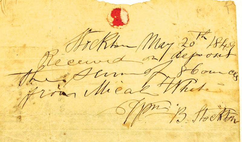 Stockton,CA - San Joaquin - May 20, 1849 - Stockton, Wm. B. Receipt :