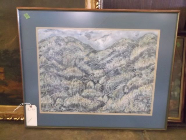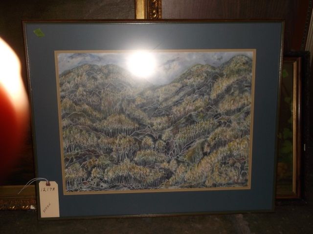 Watercolor Painting Trees on Mountain side signed by Stockton, Ca. Artist Marjorie Reynolds
