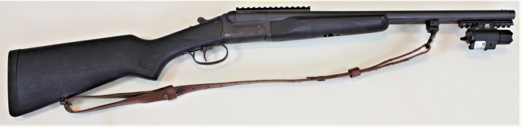 Stoeger Double Defense 20 GA. SN a057076-12 SXS shotgun 20" ported barrels, single trigger, tang safety all finishes in matte blue/black, including wood stocks by factory. Shotgun comes with top and bottom Pica Tinny rail and includes NC Star laser tactiSXS shotgun 20" ported barrels, single trigger, tang safety all finishes in matte blue/black, including wood stocks by factory. Shotgun comes with top and bottom Pica Tinny rail and includes NC Star laser tactical light combo. Very goodcondition showing some very light use and handling marks. From old St. Louis collection. FFL/Modern. Est. 250-400