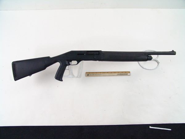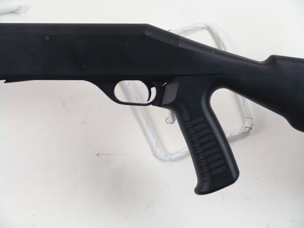 Late 1900s 40-1/2" All black, 12GA (2-3/4" & 3"), tactical, pistol grip shotgun with 18-1/2" barrel, rubber butt plate, and synthetic stock. Very good condition, minor scuffs. S/N 704441.