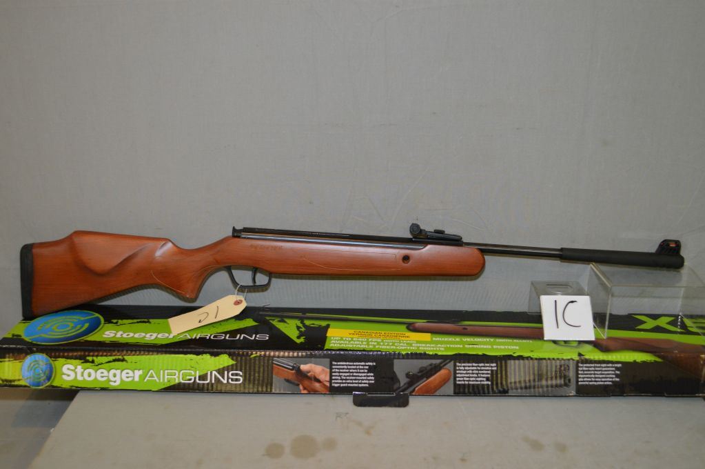 Stoeger Model X5 .177 Pellet cal Single Shot Pellet Rifle [ new in box, blue finish, barrel sights, pistol grip stock w/recoil pad , c/w orig box & booklet ] Ser # STG 1321785 NO PAL REQ