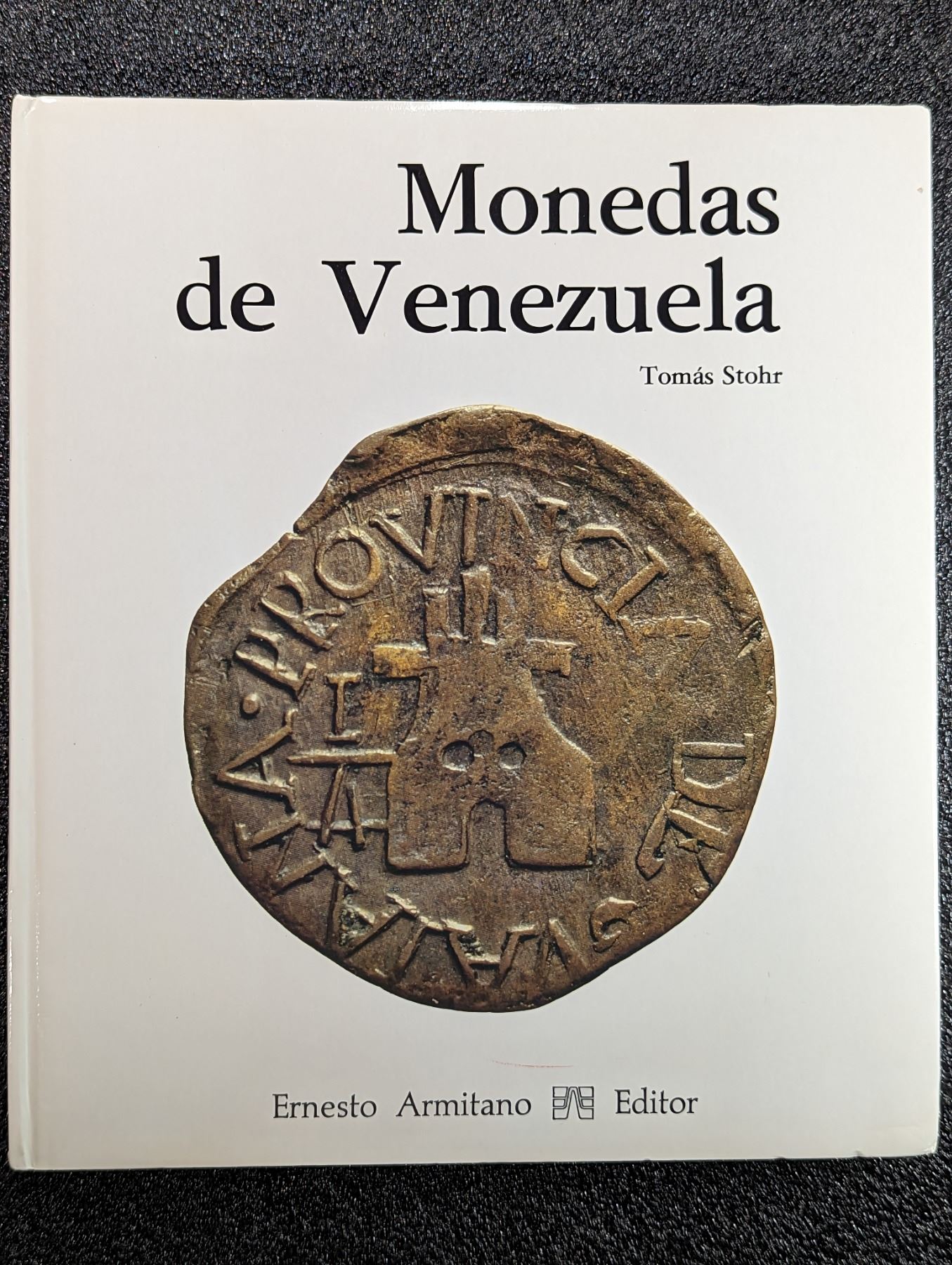 Stohr, Tomas & Ernesto Armitano (Ed.). MONEDAS DE VENEZUELA. Tomas Stohr, Caracas. 1980. Square 4to. 140, (4) pages. Original ochre pictorial cloth, jacket. Color coin photos throughout. Spanish text. Jacket/Book Fine. This book is dedicated to the coins of Venezuela. The author's intention in preparing it has been to offer something to each reader: the collector as well as the art lover, the historian, the scholar or the curious. For this reason, it gathers a little historical information with numismatic, economic, social and even anecdotal data. It covers from the colonial period to the present day, and although it is not an exhaustive work on the numismatic history of Venezuela, it allows a global view of everything that has happened in terms of coins during that time. Lot weight: 1 lbs 11oz. Subject(s): Venezuelan Coinage.