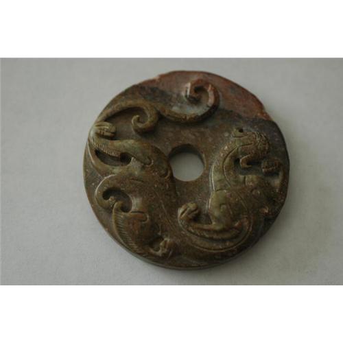 Carved Chinese Hardstone Pendant. Good condition. D: 2 1/4"
