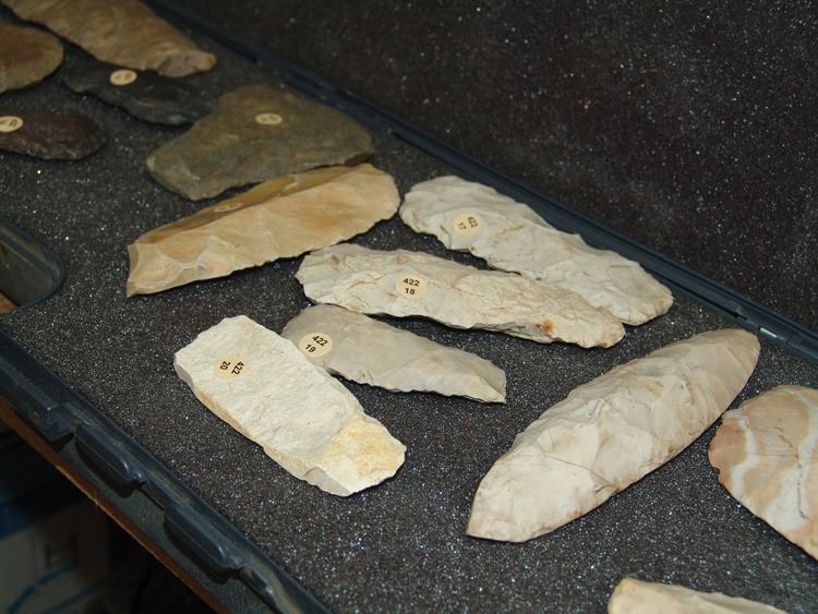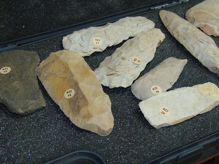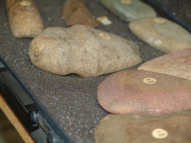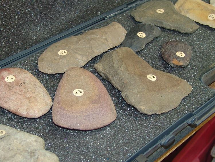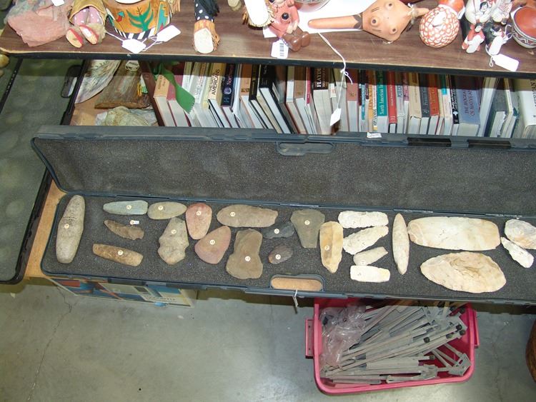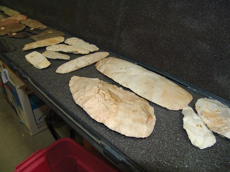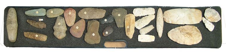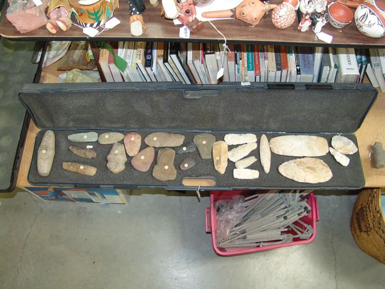 Fantastic group of (23) larger pre historic stone relics. From the Columbia river basin and Texas/South West. Including two huge knapped blades/scrappers, barbed pestle and axe head, plus many other grinding stones,,Pre Historic,Largest 10"