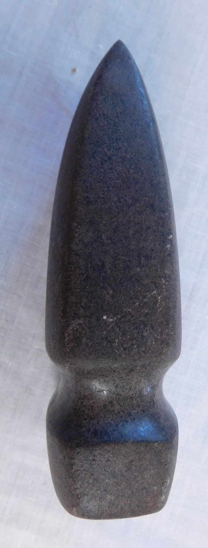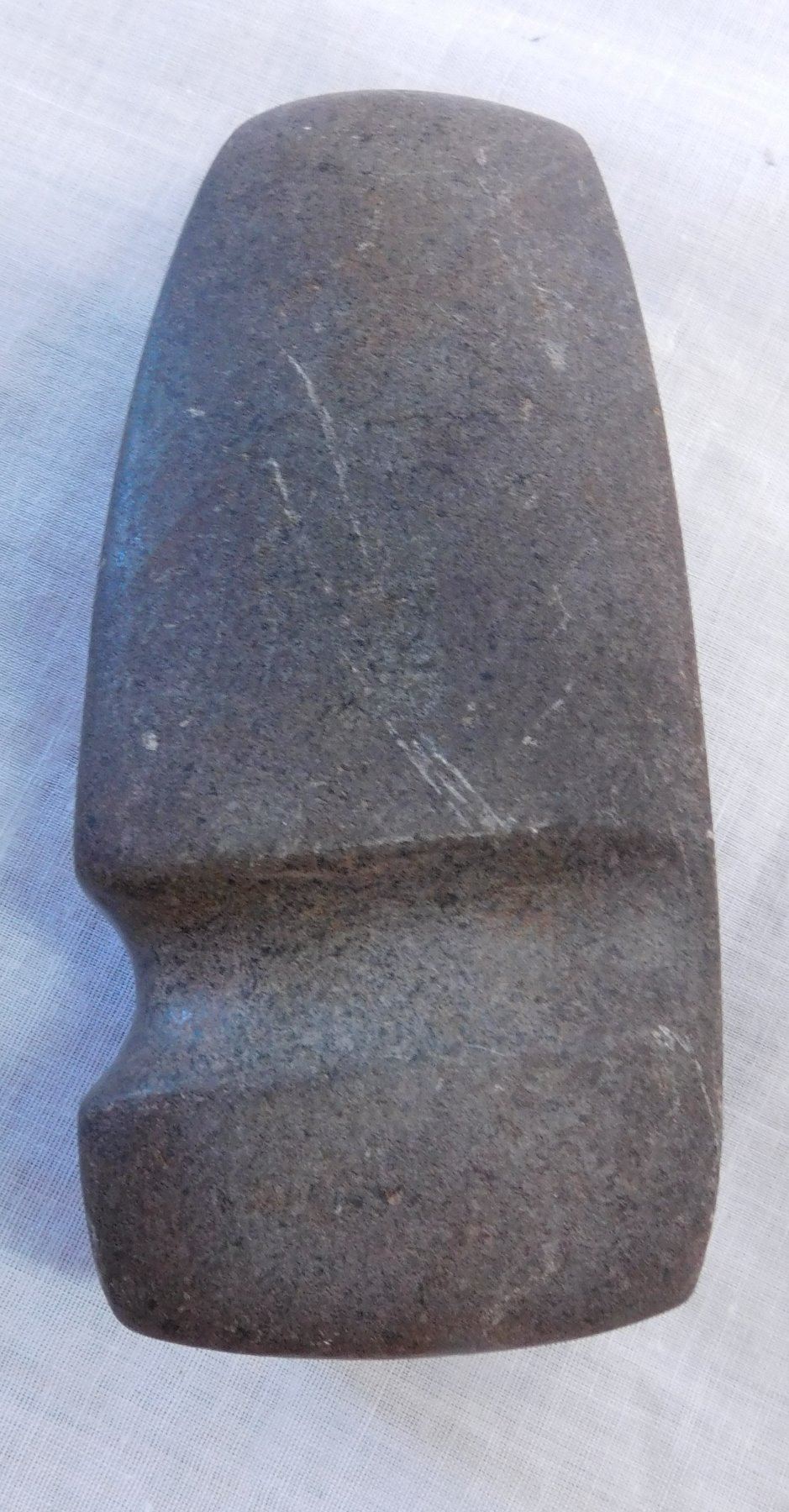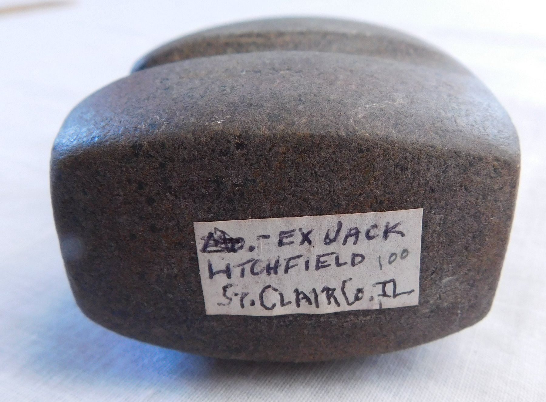 Stone Axe, pre-historic item. Made of basalt, the item measures 6" x 2 1/2". St. Clair County, Illinois. Nice 3/4 groove axe. Condition: Minor scratches, see images. Shipping: $18.50 w/insurance and signature.