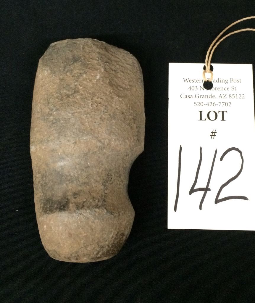 This prehistoric axehead came out of the old Frontier Relics Museum (Orville Mickens estate). Mr. Mickens found most of the items in his museum while tromping around historical areas in Arizona and New Mexico. Measures just under 5” long. Shipping: There will be a $5 handling / packaging fee for shipping this lot. The actual cost of postage will be added on top of that.