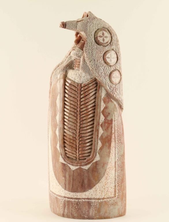 Mountain Man in wolf skin hat by Franklin Foster. Signed on back 'FF 88'. Measures 14 1/4"h x 7"l x 3 3/4"w.