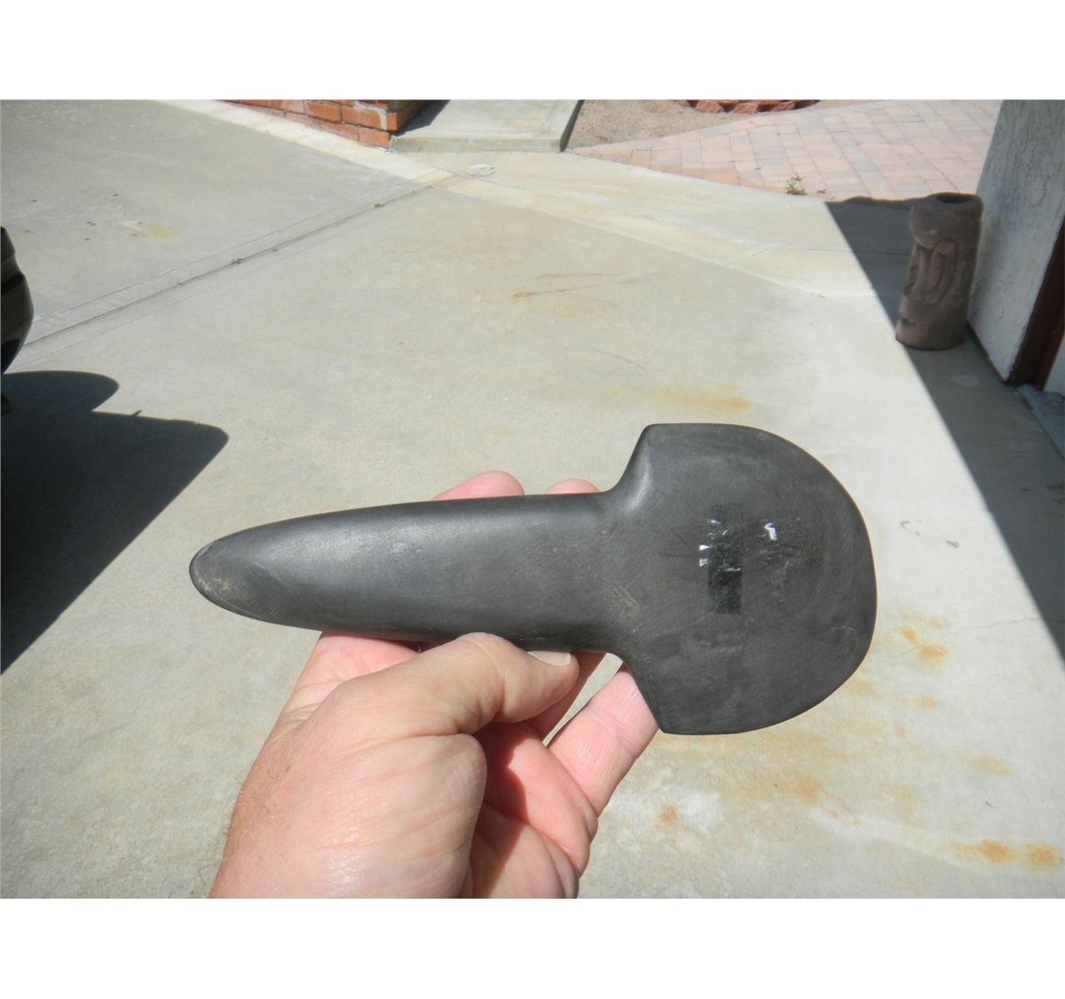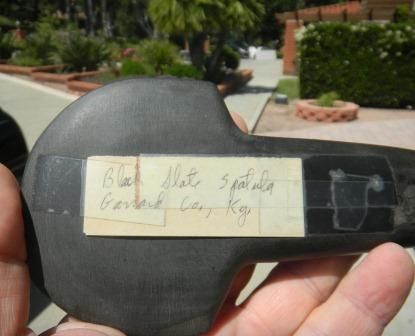 Black Stone Celt, Flare bit from Kentucky. Item measures 3x8x1 inch. 500 BC. Good condition. Shipping $12.50