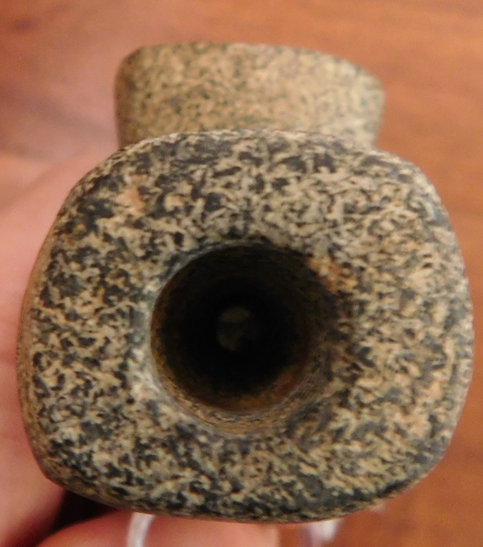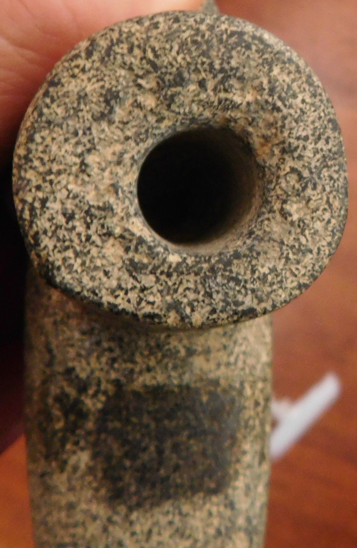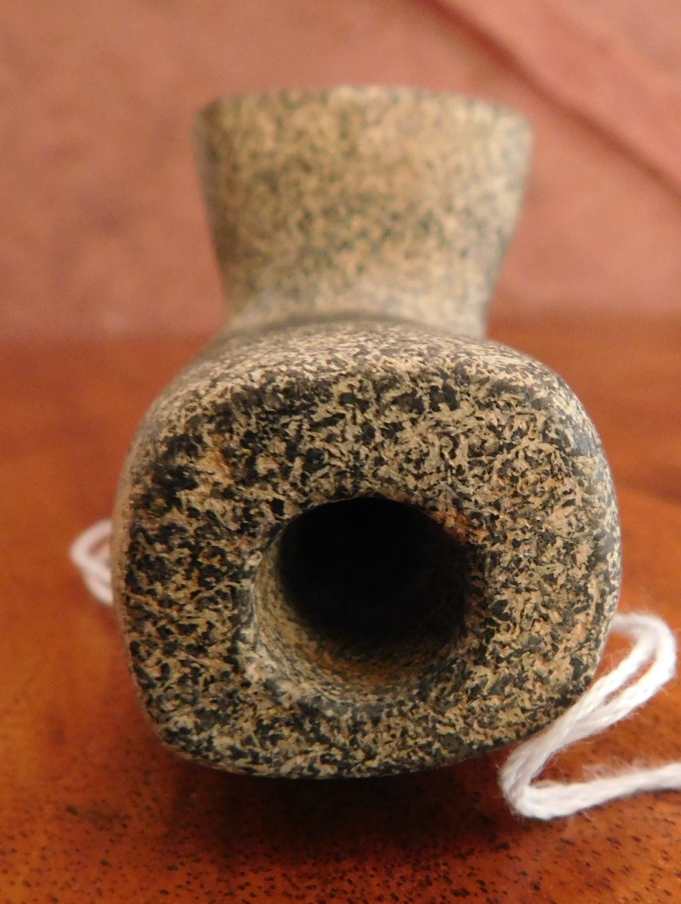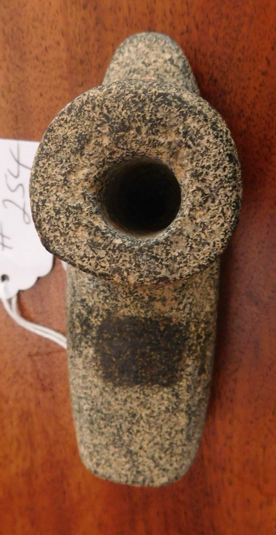 Stone Pipe, pre-historic item. Made of granite, the item measures 4" x 2" x 1 7/8". Jasper County, Illinois. From an old, 1960s California collection. Condition: As found, good, see images. Shipping: $20.00 w/insurance and signature, due to value.