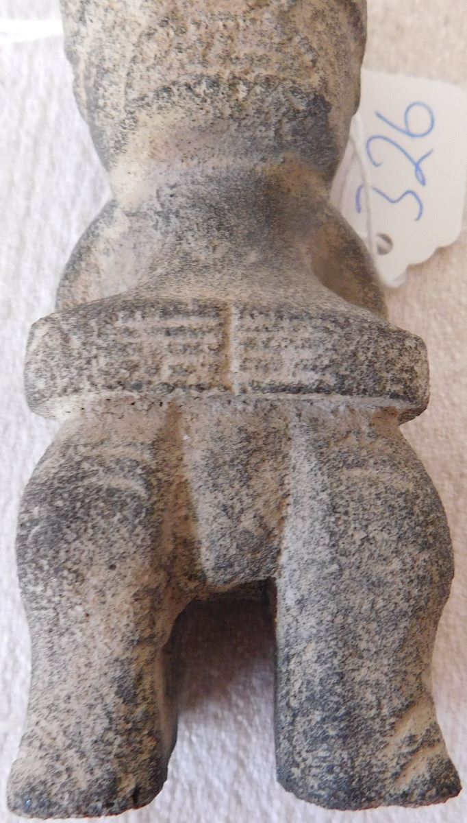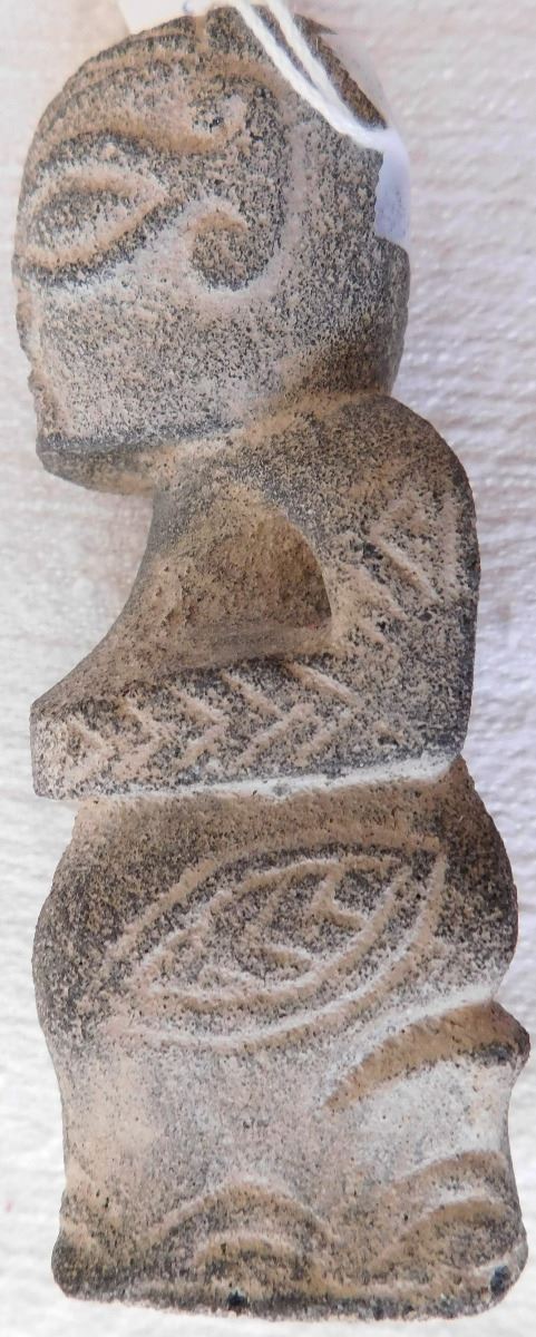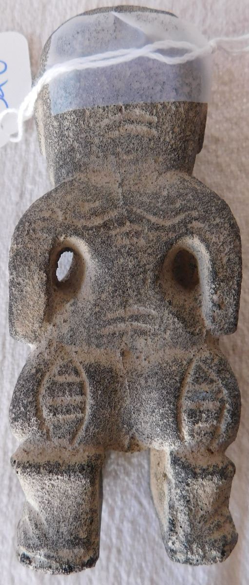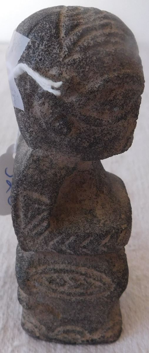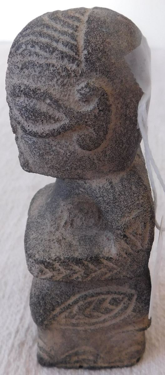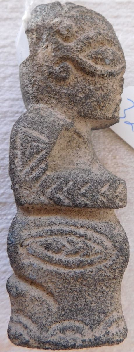 Stone Polynesian Figure, circa 1800s. Made of basalt, the item measures 4" x 1.25" x 1.5". From the Marquesas Islands. Classic Marquesas style carving. Condition: Minor nicks, see images. Shipping: $18.50 w/insurance and signature.