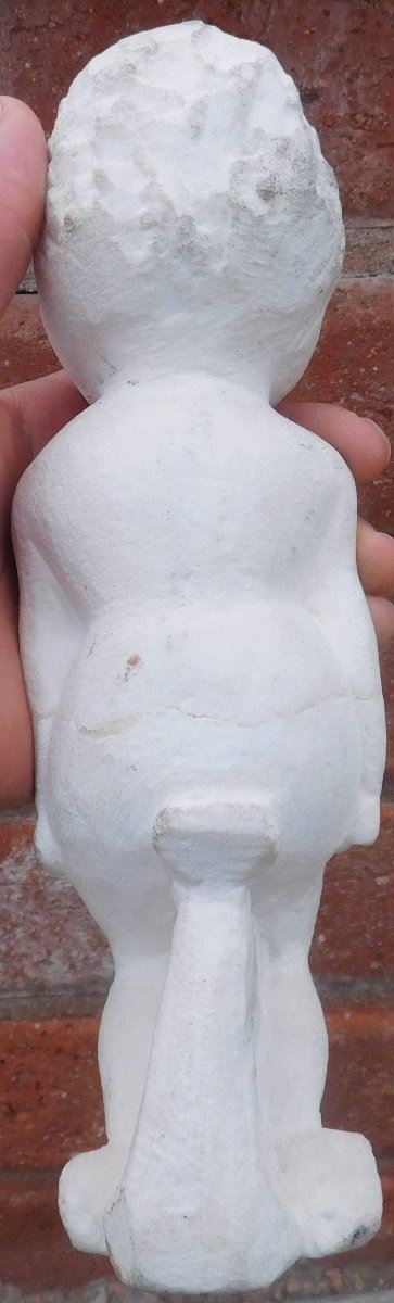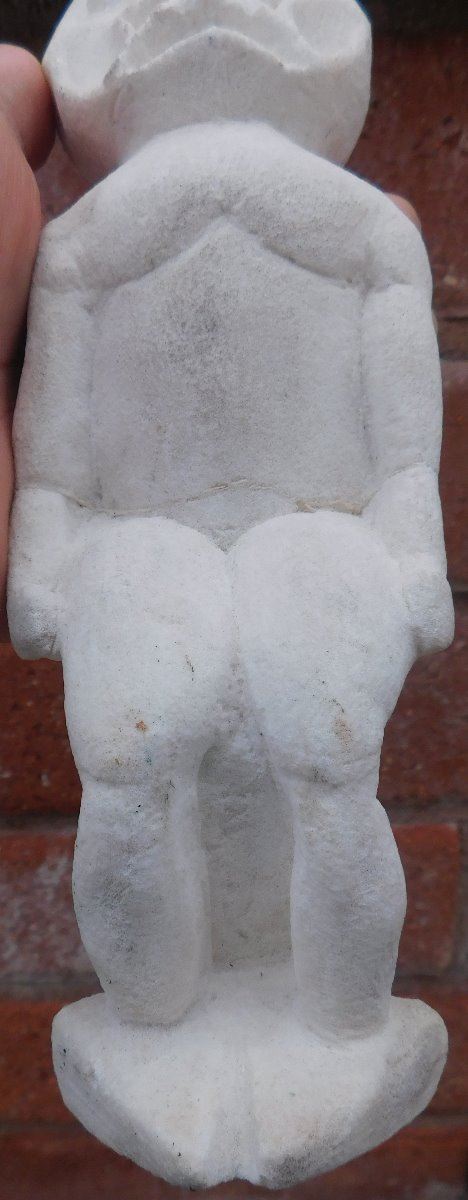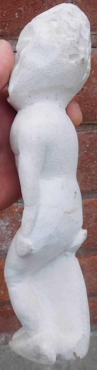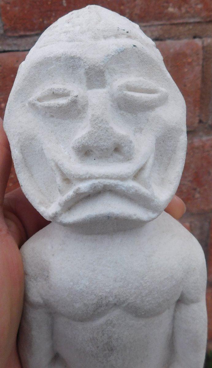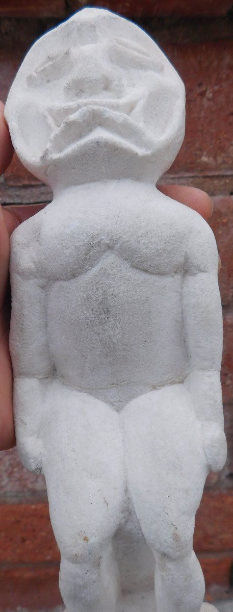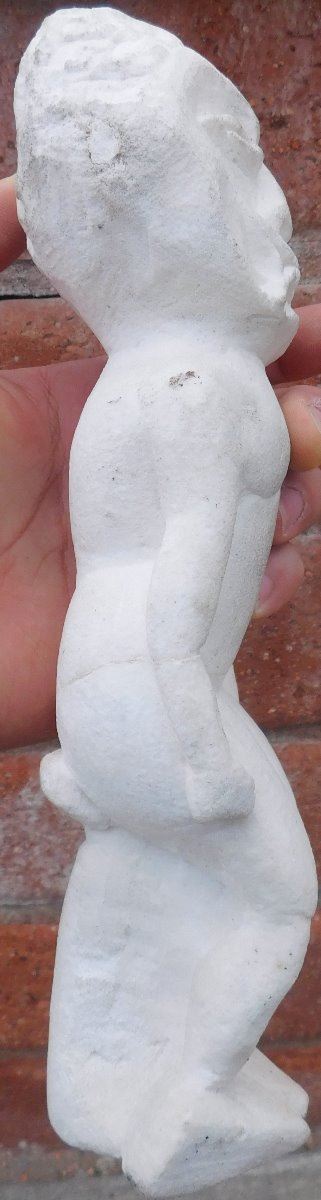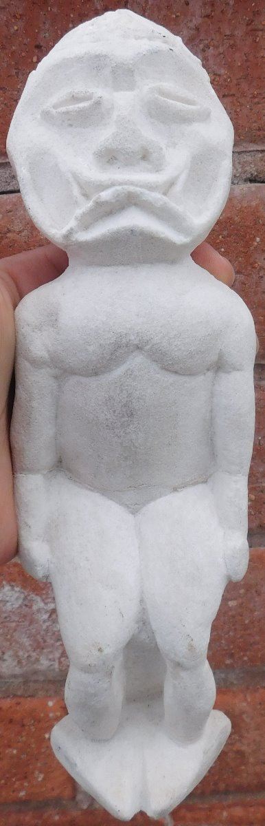 Stone Polynesian Figure, circa WWII. Made of white stone, the item is 3.25" x 2.75" x 9.75". Island unknown, Polynesia. Condition: Fair, see images. Shipping: $24.50 w/insurance and signature, double-boxed.