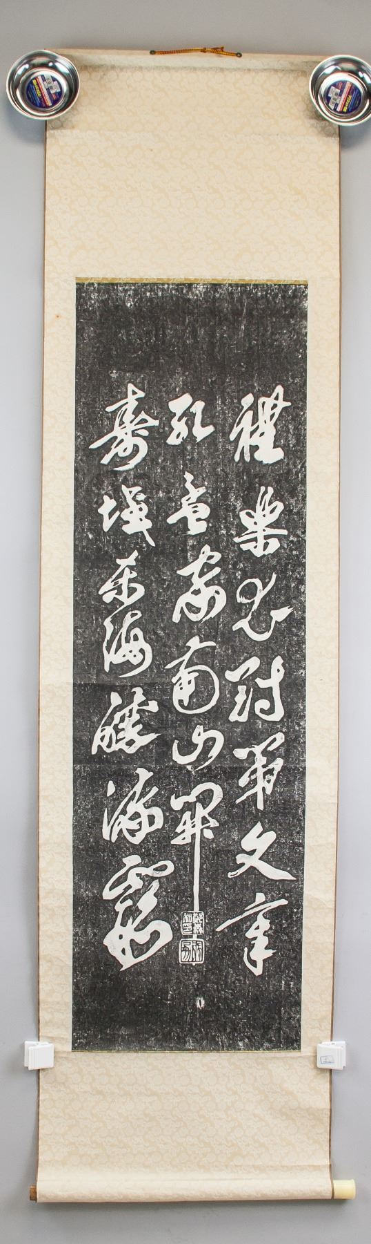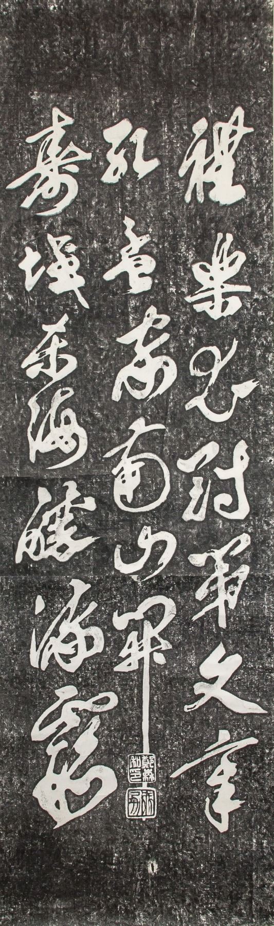 Stone rubbing of Chinese calligraphy in cursive script, Chinese ink on paper, hanging scroll, 110 x 33 cm