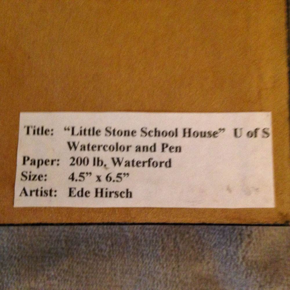 "Stone School House" UofS Watercolour & Pen Drawing by E. Hirsch