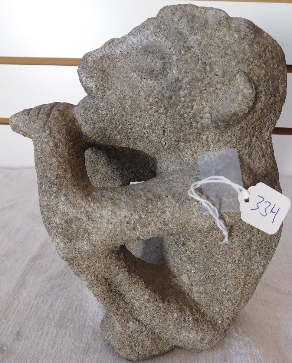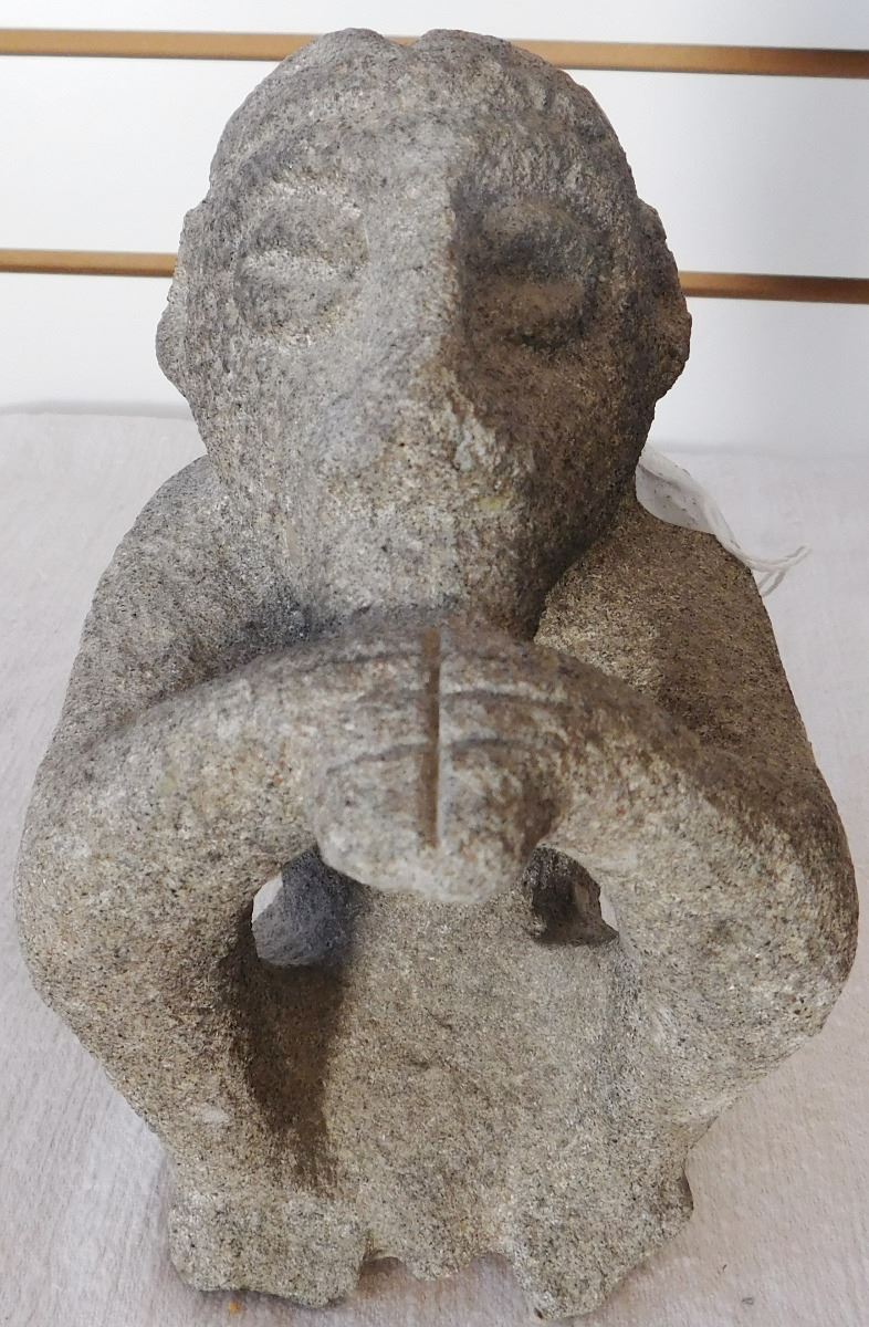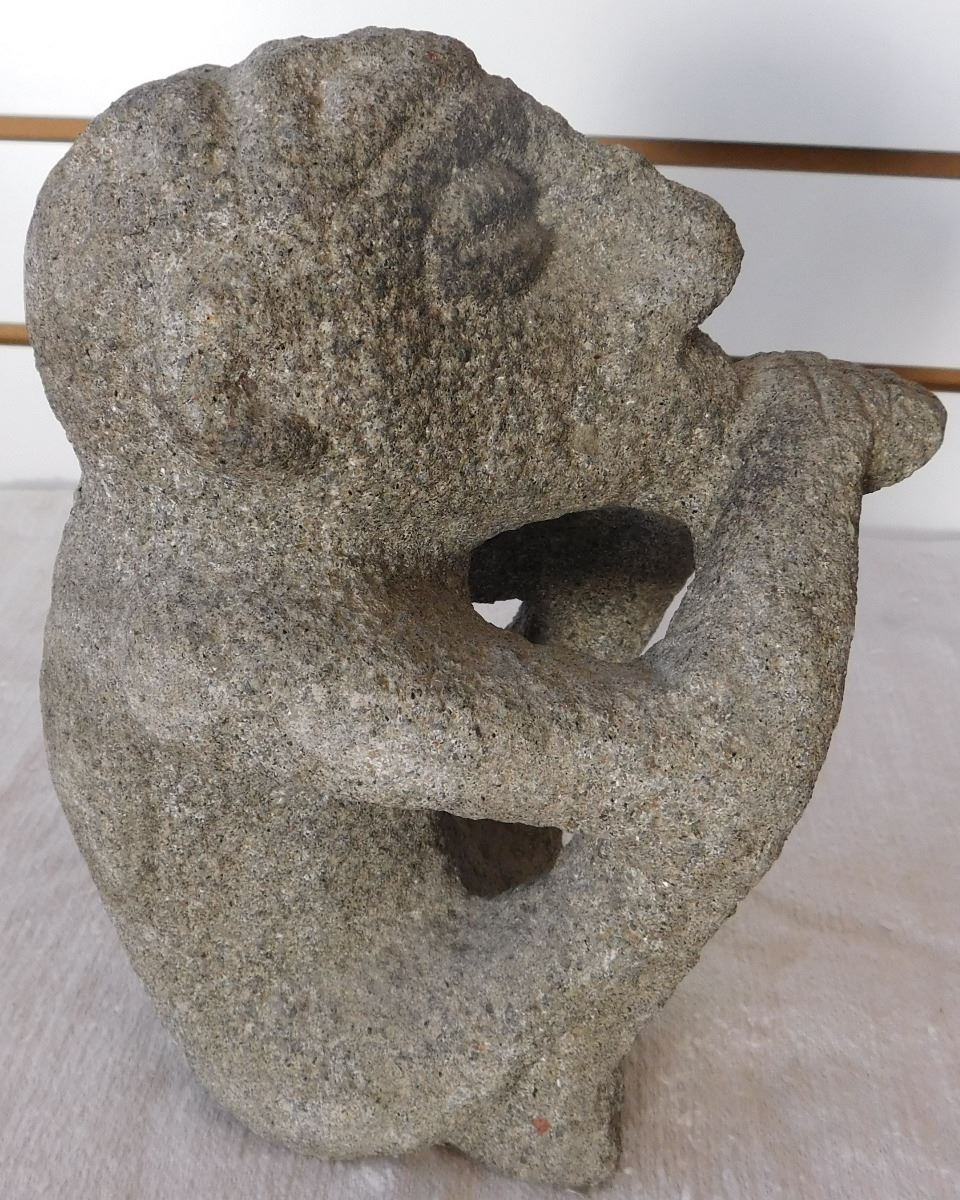 Stone Sculpture, circa 2000 years old. Made of basalt, the item measures 4.5" x 6.5" x 8". From Costa Rica. Condition: As found, see images. Shipping: $30.00 w/insurance and signature.