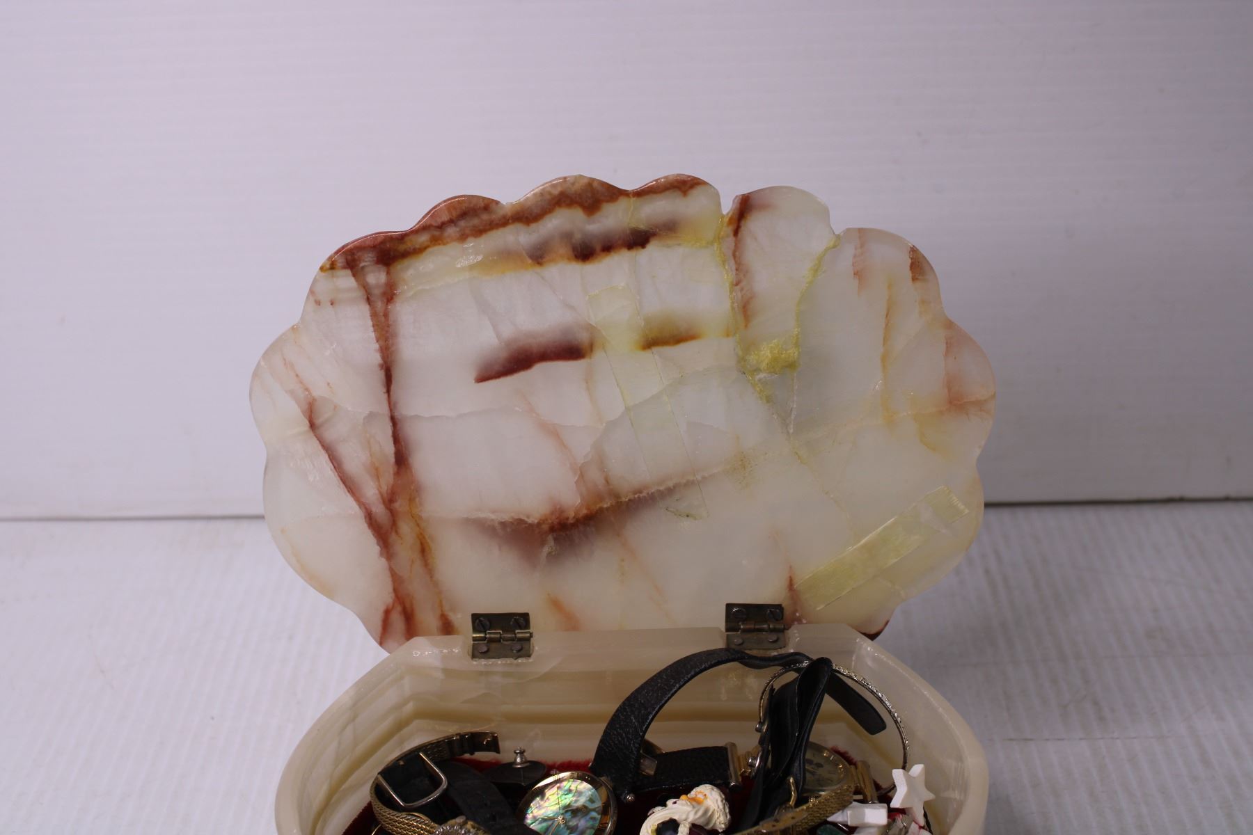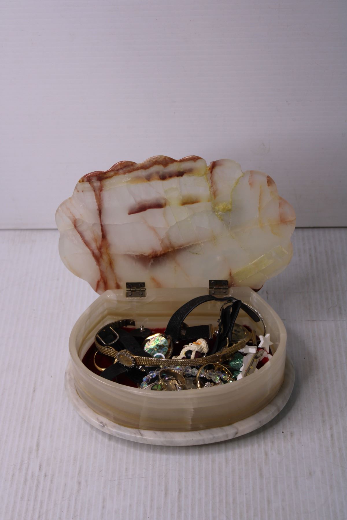 Stone Shell Jewelry Box with Misc. Jewelry