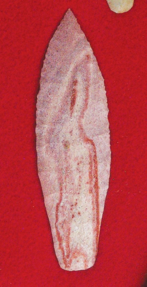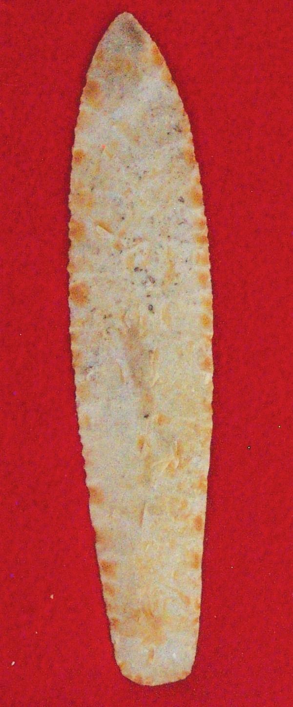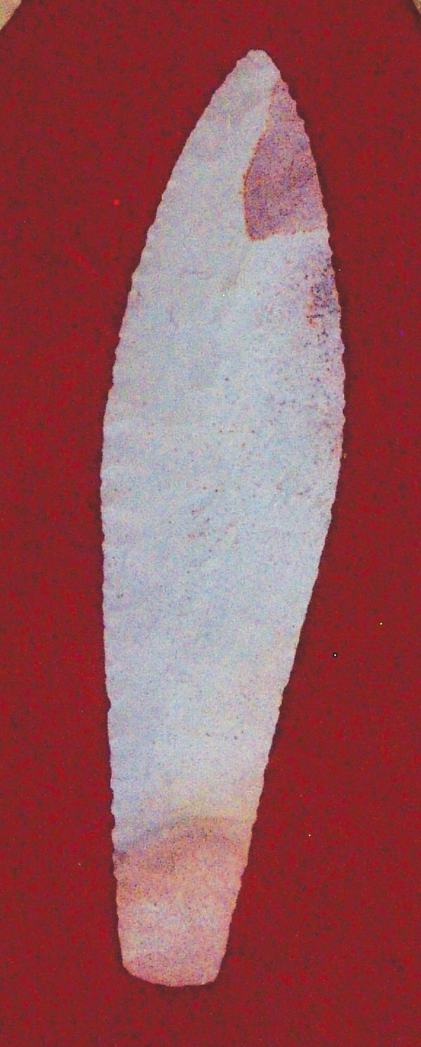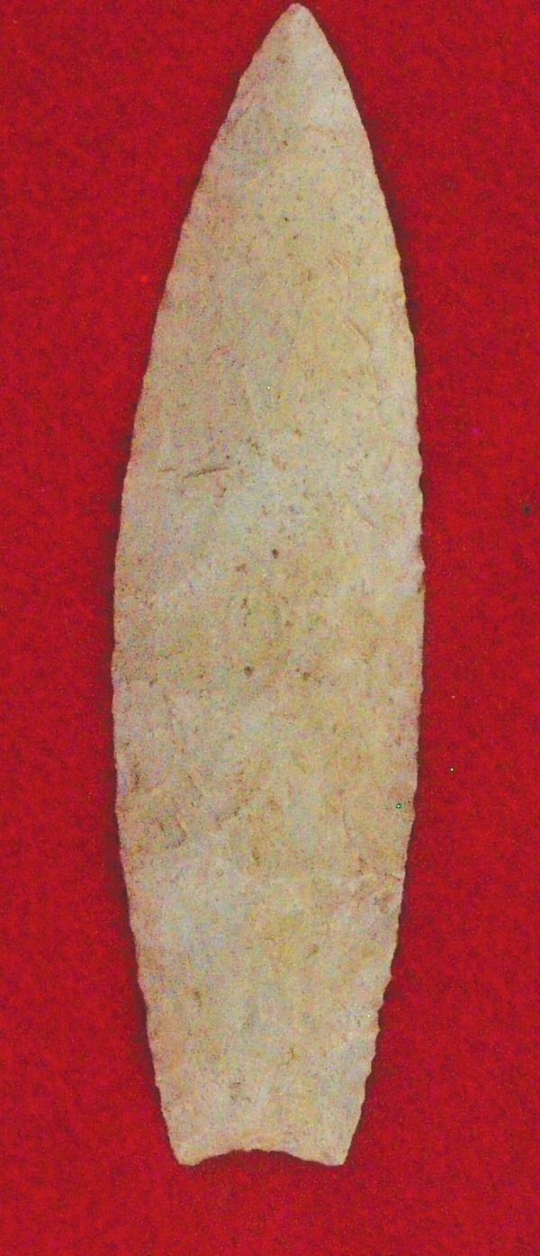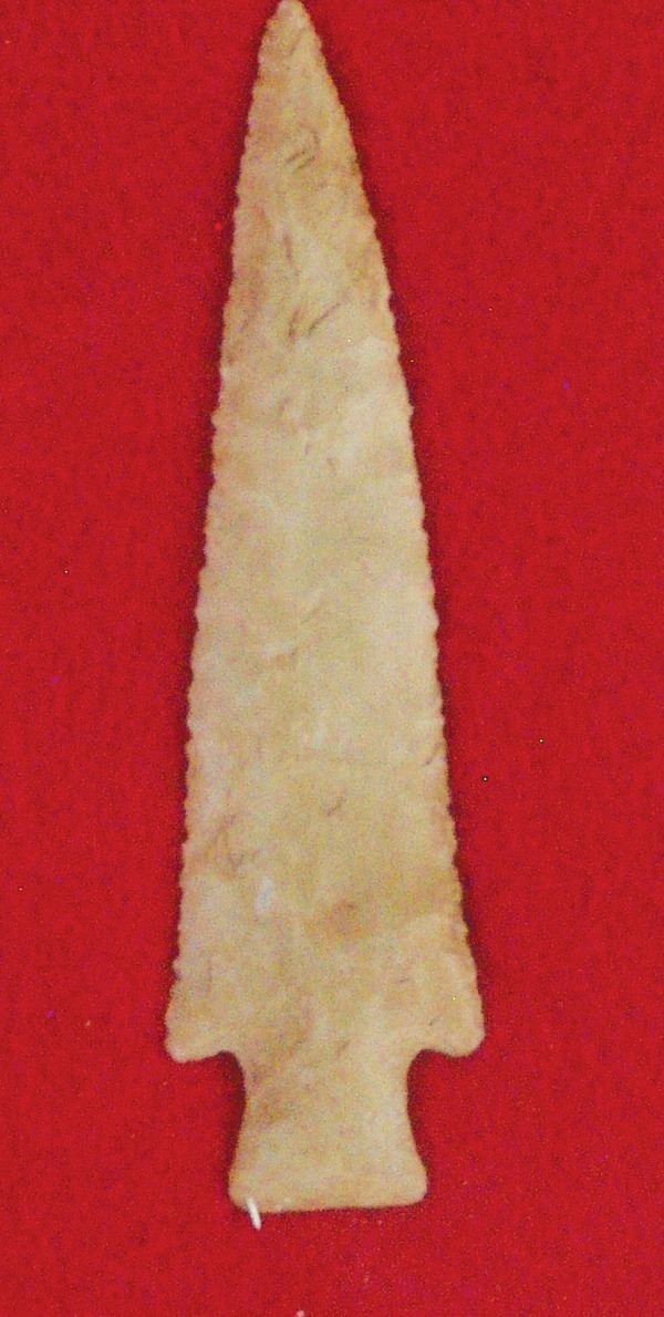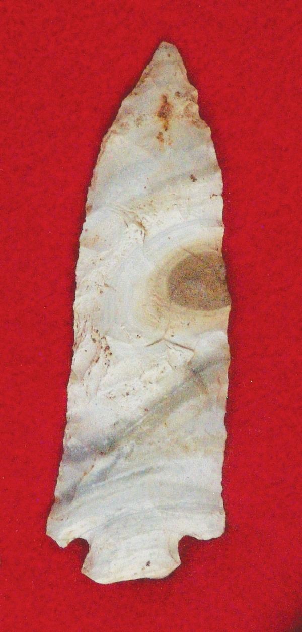 Large display case loaded with 14, expertly knapped white stone spear points, blades etc. Excellent condition.Late 1900s18" x 24"