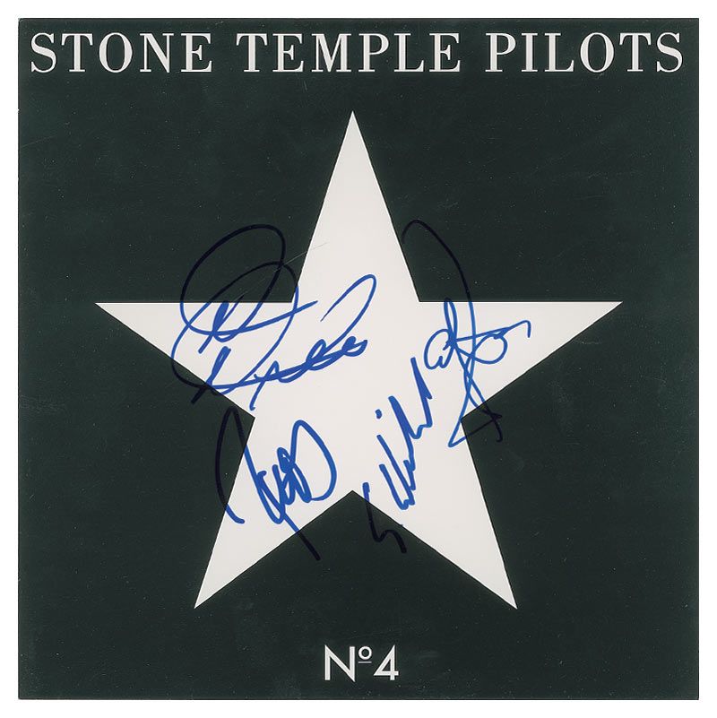 No. 4 album flat signed on the front in blue felt tip by Scott Weiland, Dean DeLeo, Robert DeLeo, and Eric Kretz. In fine condition. Accompanied by four photos taken at the time of signing.