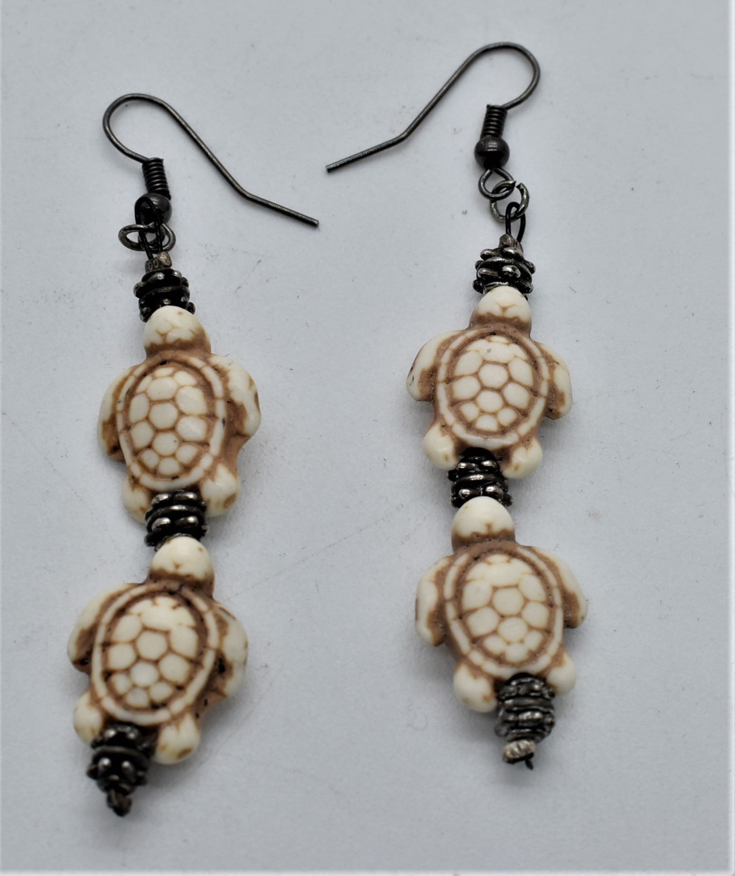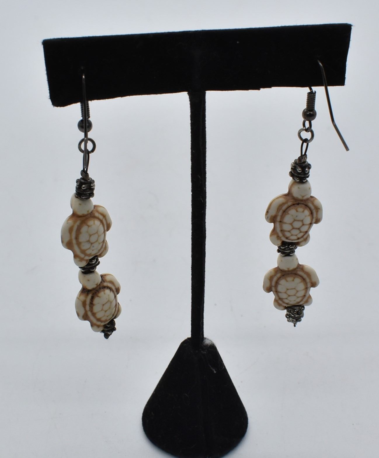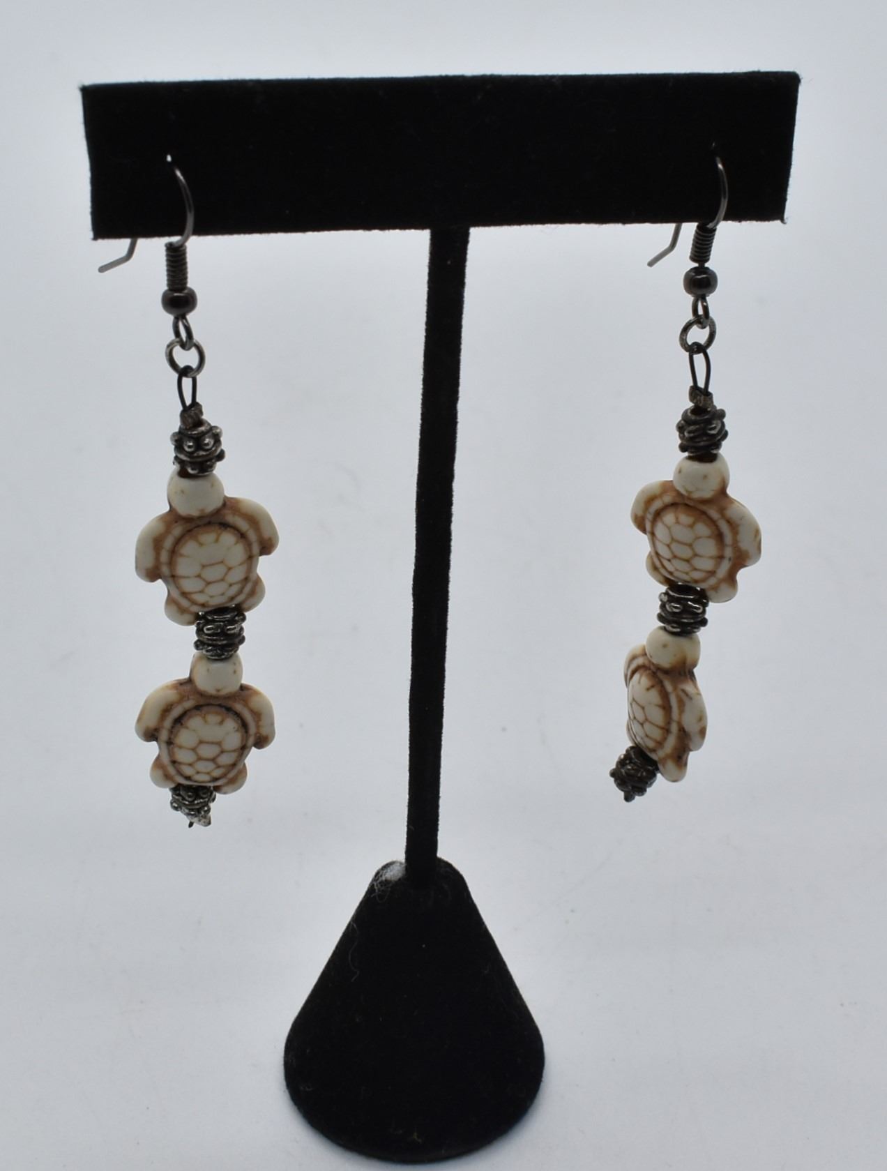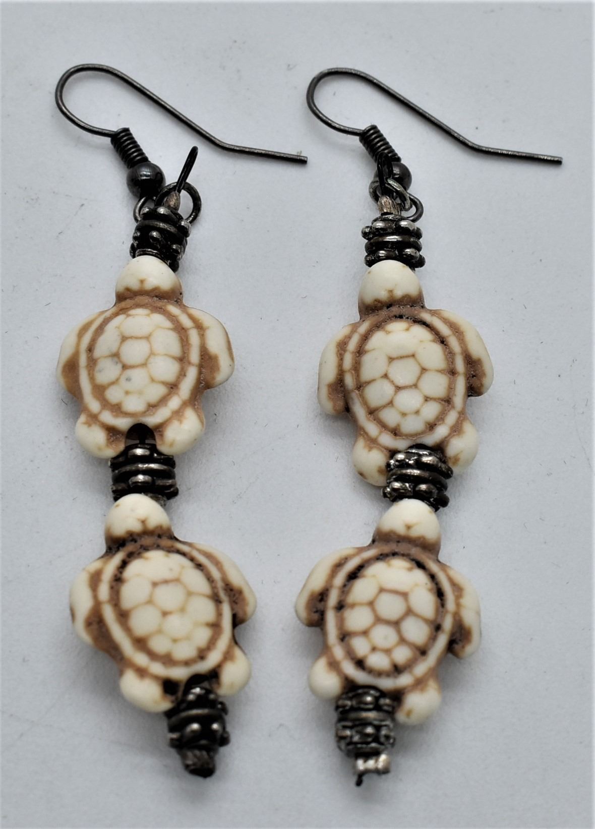 Stone Turtle Pierced Wire Earrings, measure 3''L which includes the wire
