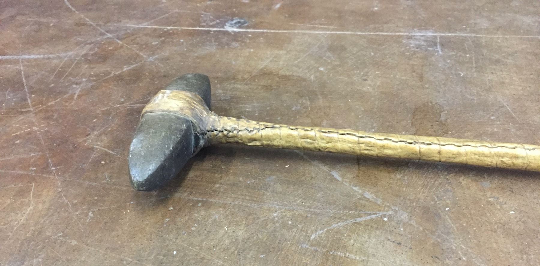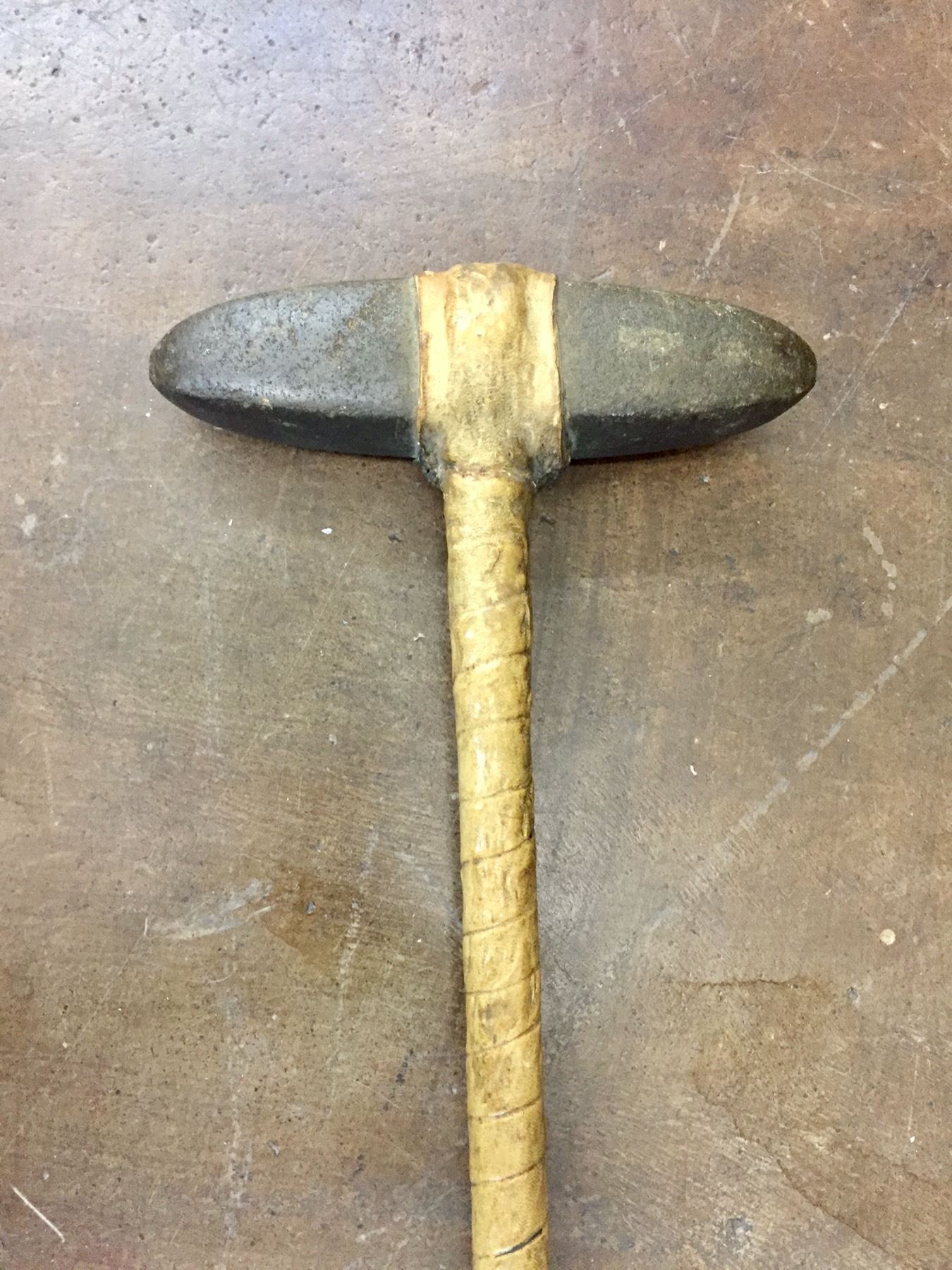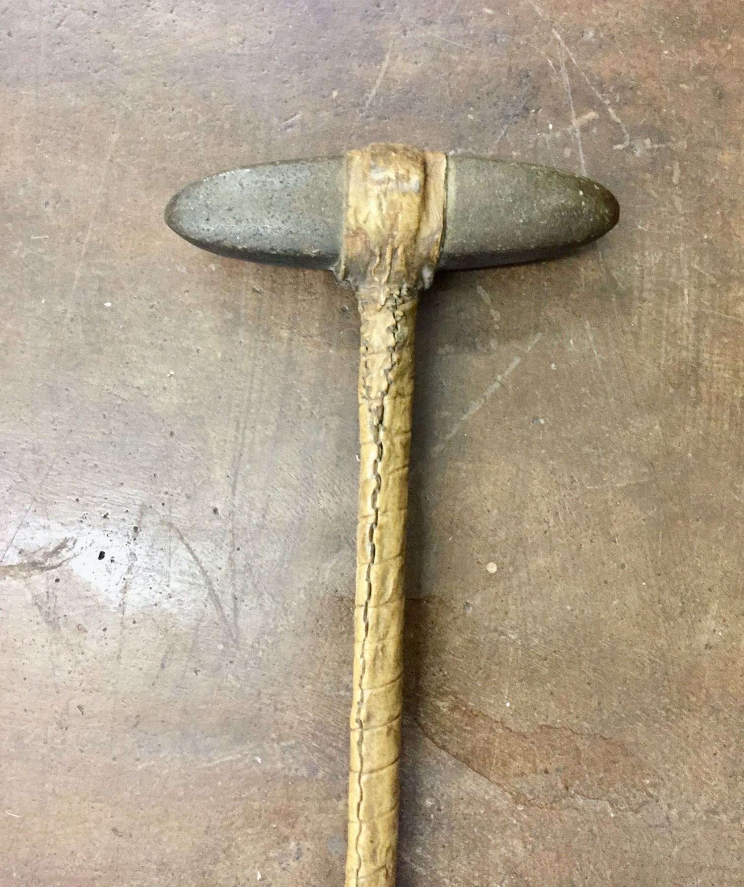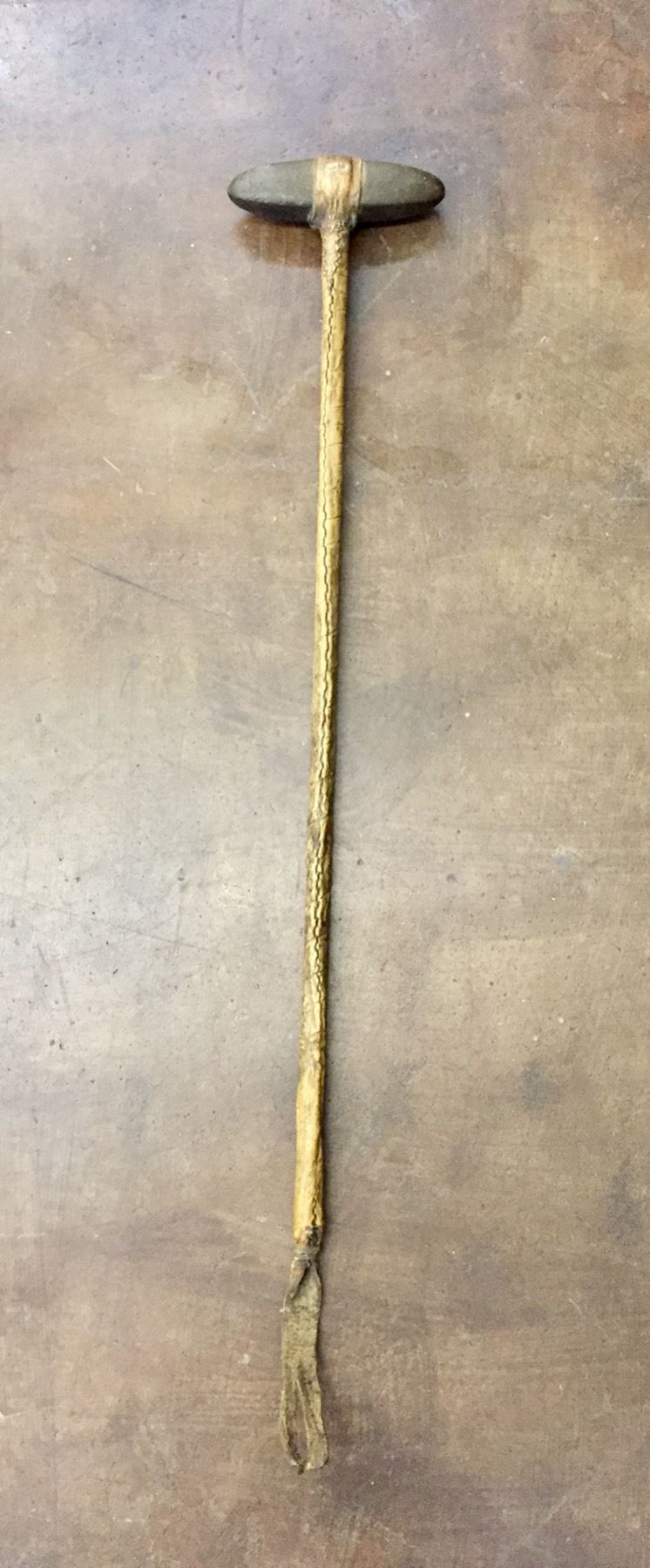 Description: For your enjoyment we offer for sale this authentic stone war club from the late 19th Century. It is covered in rawhide with a stone head. Sinew sewn. Maker: Unknown. Approx. Age: 4th quarter, 19th century. Size: 7”w x 40” long. Condition: Good for its age, some wear and age expected. Please look closely at the pictures - they are an important part of our description. Shipping: There will be a $10 handling / packaging fee for shipping this lot. The actual cost of postage will be added on top of that.