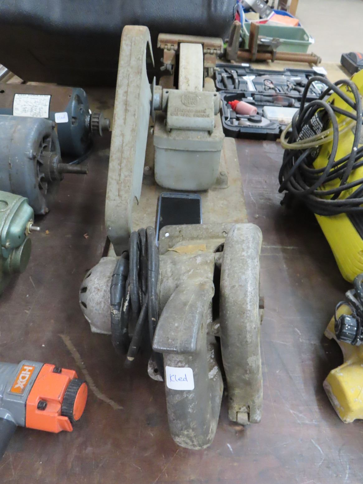 Stone Wheel Sharpener, Vintage Circular Saw, Cell Phone