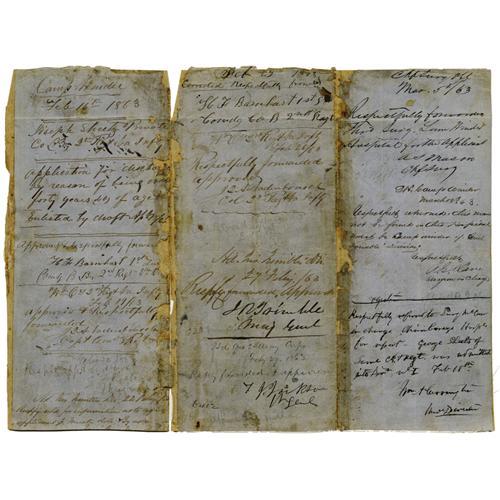 <B>Confederate General Thomas J. 'Stonewall' Jackson & General Isaac R. Trimble Signed War Document.</B></I> This document concerning the discharge of a soldier due to his age is signed by the famous Confederate tactician General Stonewall Jackson as well as by Major General Isaac Ridgeway Trimble. A West Point graduate (Class of 1846), Jackson served in the Mexican War where he first met Robert E. Lee. Jackson went on to become one of the most beloved of all the Confederate generals gaining his nickname 'Stonewall' at 1st Bull Run when General Barnard Bee seeking to rally his troops spotted General Jackson's gallantry on the field and shouted, "There stands Jackson like a stone wall - rally behind the Virginians!"<BR><BR>This 11" x 8" document has wear at the three folds and has been adhered to a later document that details payment for Confederate renting of a building. As the relevant document shows, the trail of approval of the soldier's discharge leads to General Jackson where he signs his approval dated February 27, 1863- just three months before he would be accidentally shot by his own troops at the Battle of Chancellorsville. At first he had his left arm amputated, then succumbed to pneumonia dying eight days after the amputation. One of Lee's most trusted generals, after the amputation Lee said, "He has lost his left arm, but I have lost my right arm."<BR><BR>This document has two generals' signatures. Major General Isaac Ridgeway Trimble signed the document the same day just above Jackson's signature. Trimble, although himself a major general, because of ill health could not command a division. He had served admirably with Jackson during the Shenandoah Valley Campaign but was seriously wounded in the leg at 2nd Bull Run. He would later serve gallantly at Gettysburg in Pickett's charge being again wounded in the same leg. Due to the risk of taking him back to Virginia and infection setting in, he was left to be captured by Union troops. The leg was amputated and Trimble served out the remainder of the war as a Union prisoner. The document comes in a gray hardbound volume with gold engraved lettering. <BR><BR><b>Shipping:</b> Small Collectibles (<a target="_blank" href="http://www.heritageauctions.com/common/shipping.php">view shipping information</a>)