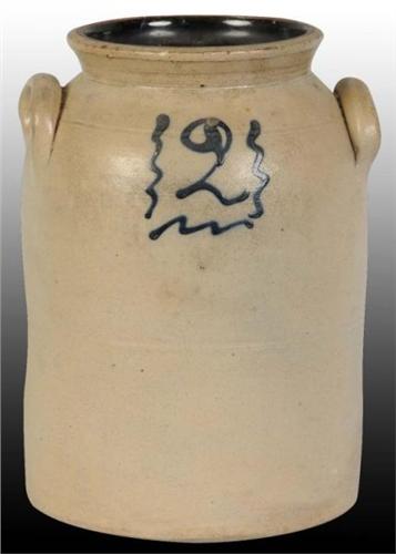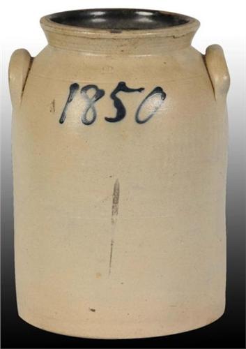 Description Dated "1850" and "2" in blue. Two handled crock. Six inch crack from bottom to middle. Condition (Excellent). Size 12" T.