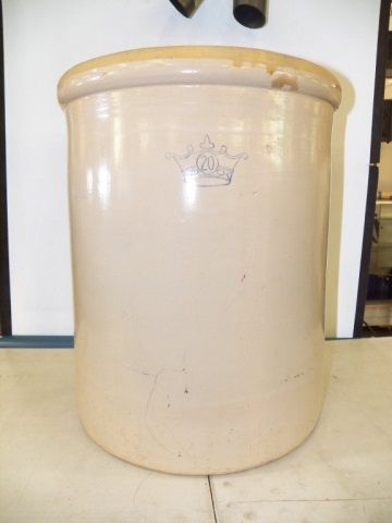 Circa 1890's Early Stoneware Crock 19" Round x 23" Tall and approx 82 lbs has a crown around the 20 condition is good