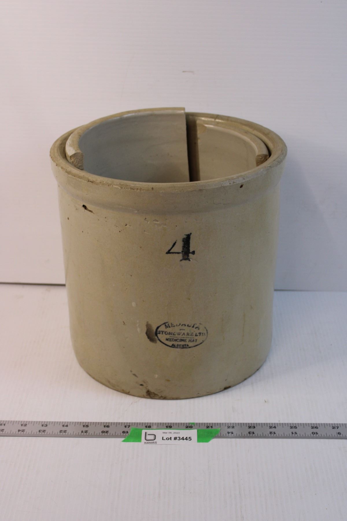 Stoneware Crock #4 Medalta (Inside Crock is Shattered, General Chipping)