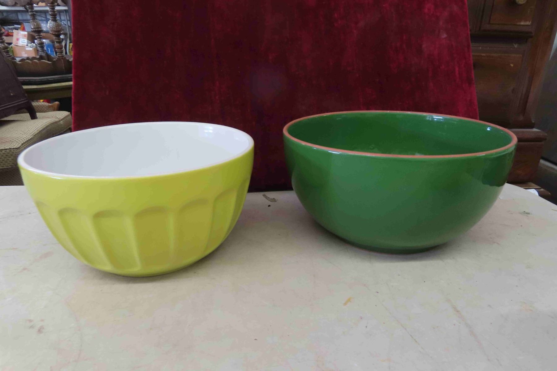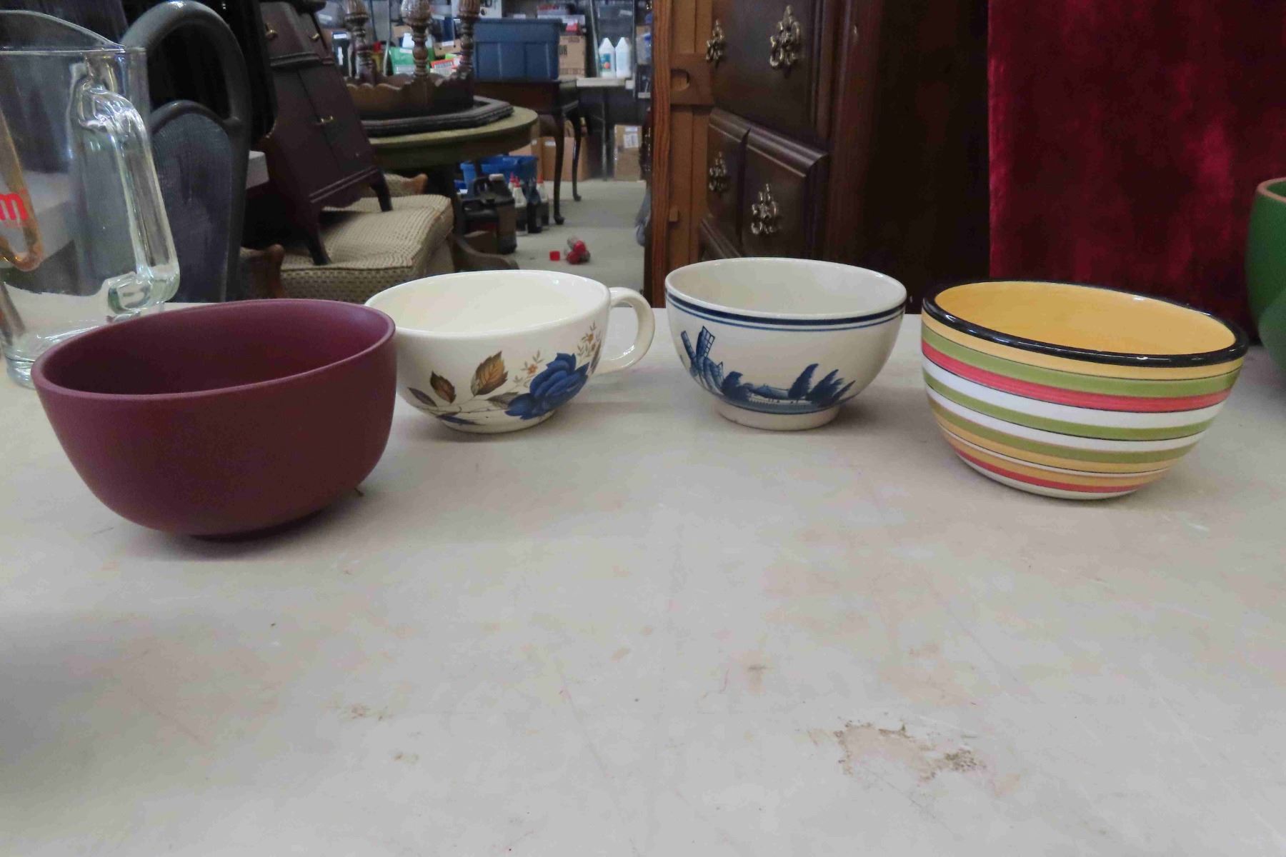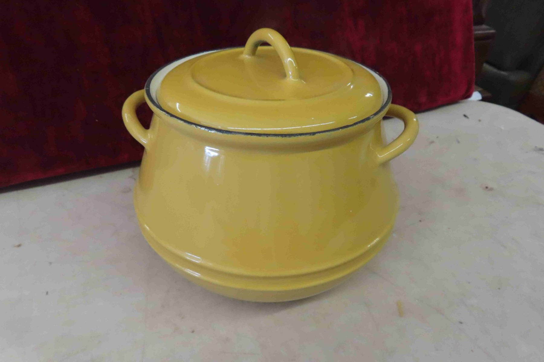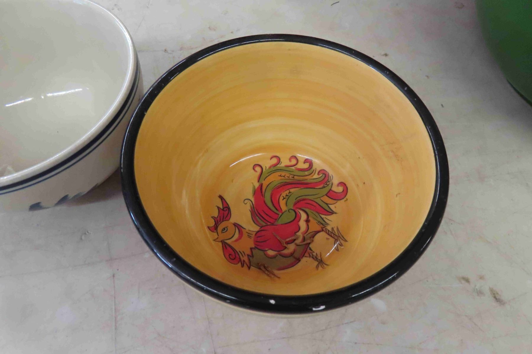 Stoneware Crock with Lid, Bowls, Metal Bean Pot