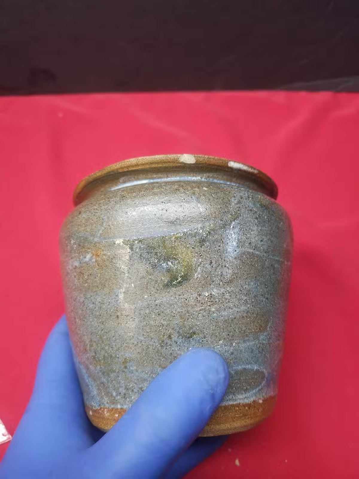 n beautiful shape, this stoneware vase is a true eye catcher, minor chip on 1 side (see photos), otherwise is in really good condition.