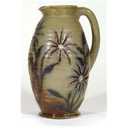 Stoneware jug incised with stylised flowers, inscribed R W Martin Southall to base, 26cm high