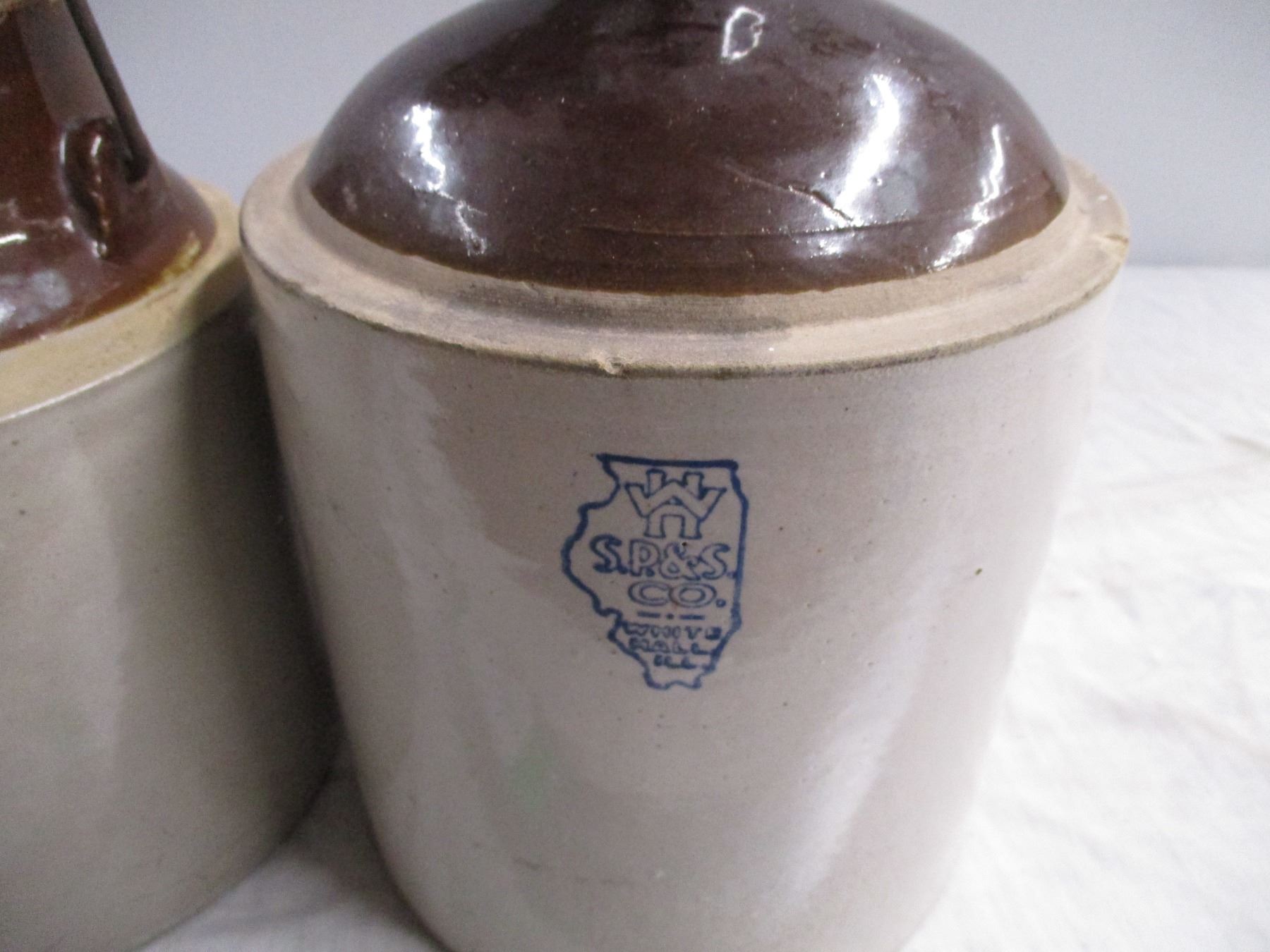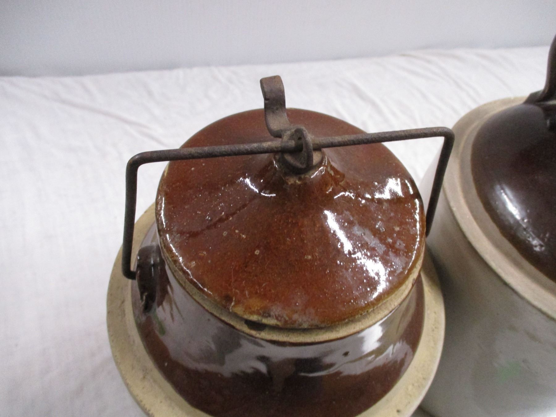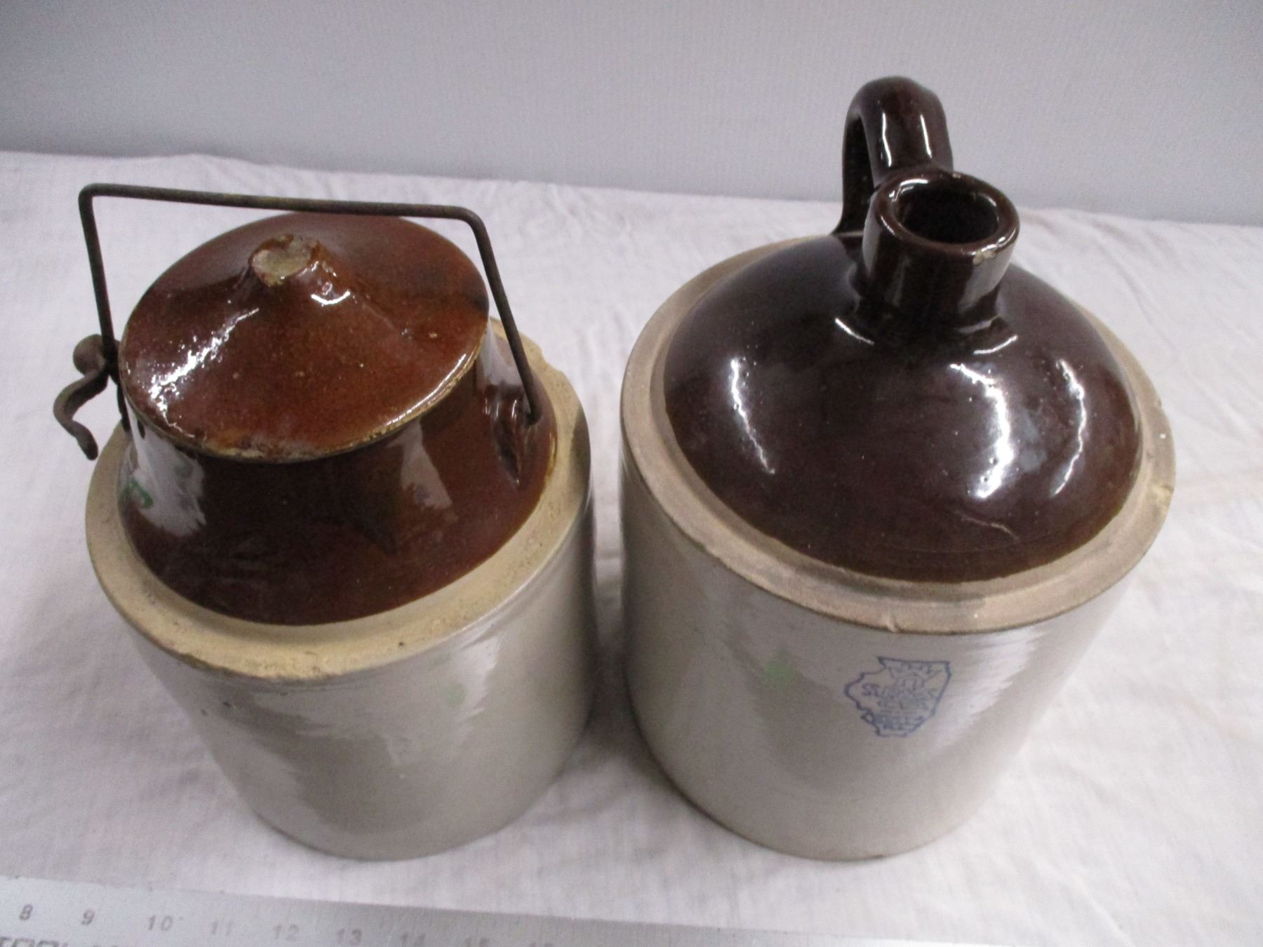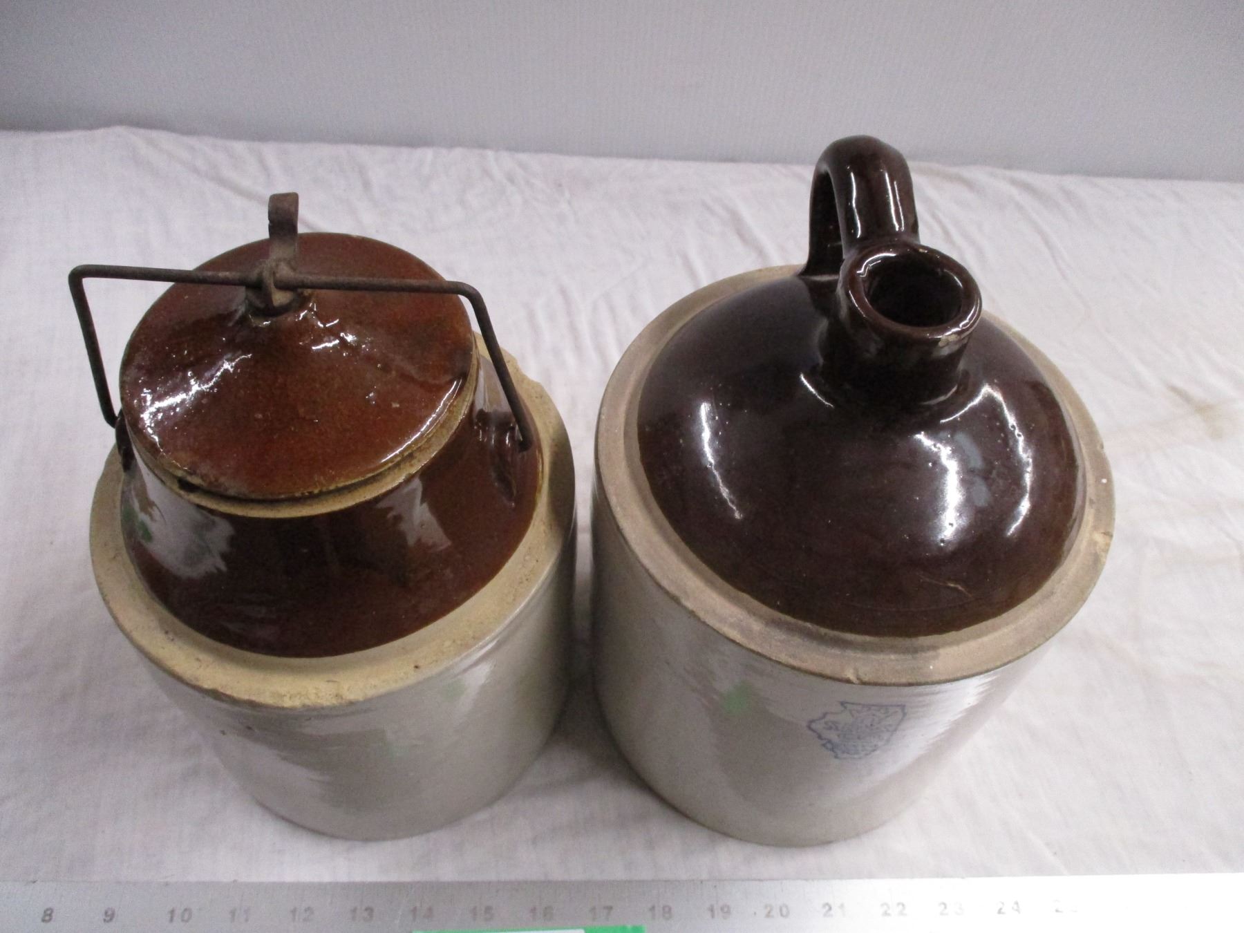 Stoneware pickle crock + stoneware jug