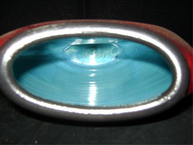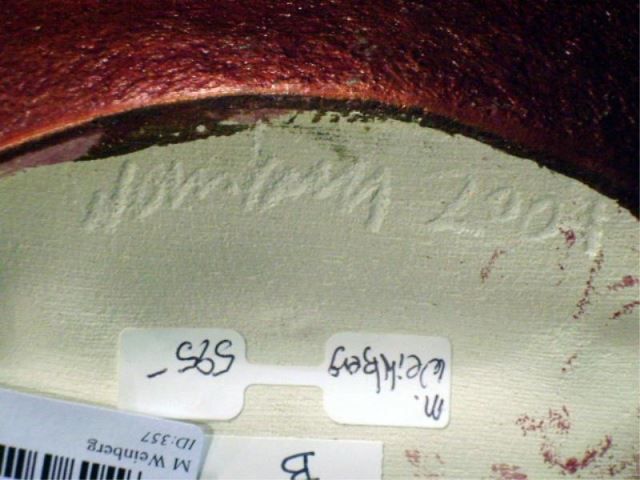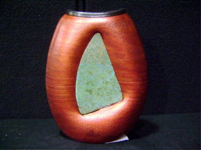 Stoneware vase w/ Metallic Copper Finish w/ Inserted Wedge Shaped Metal Object Inside by M. Werberg