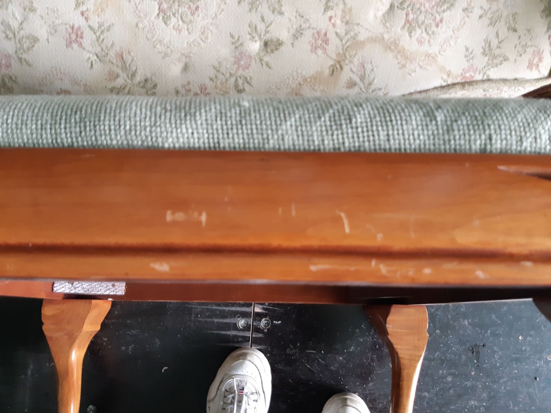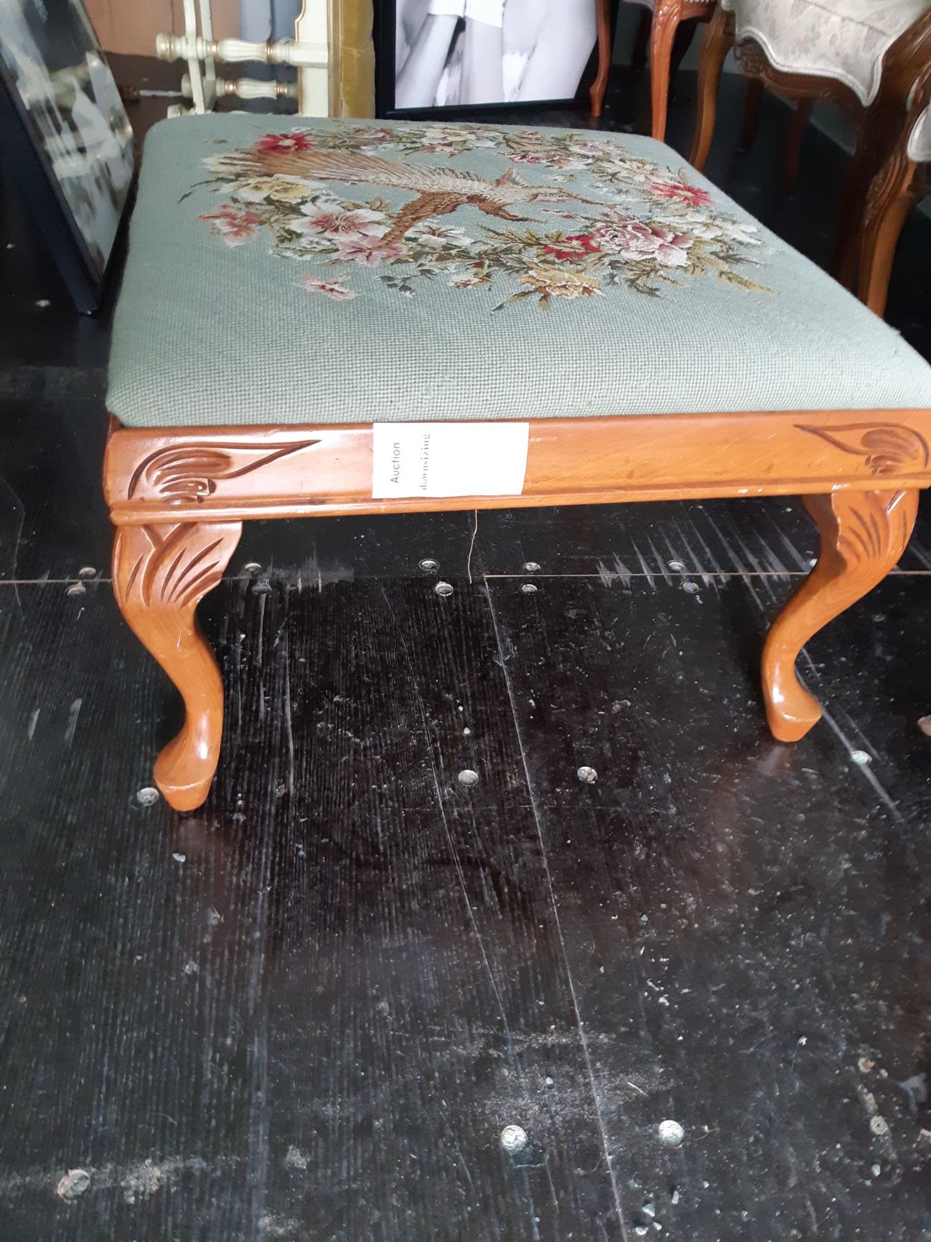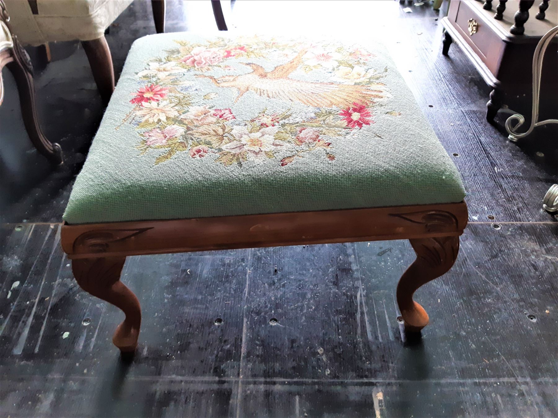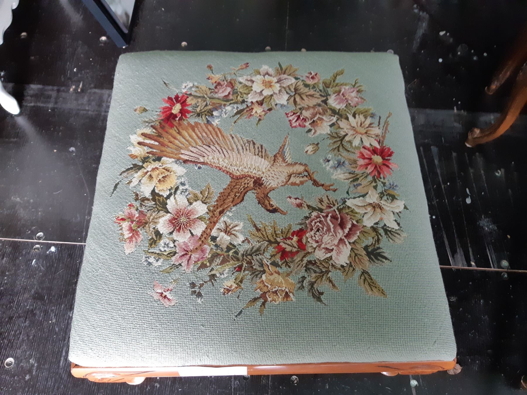 Stool with needlepoint fabric 23x23x15 note scratches Pickup at 11 am