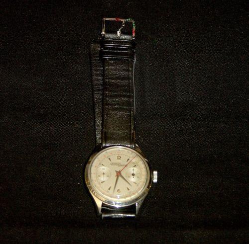 Montre-bracelet chronographe en or 18 cts, signée sur le cadran CHARLES NICOLET A TRAMELAN, mouvement Landeron, années 1960