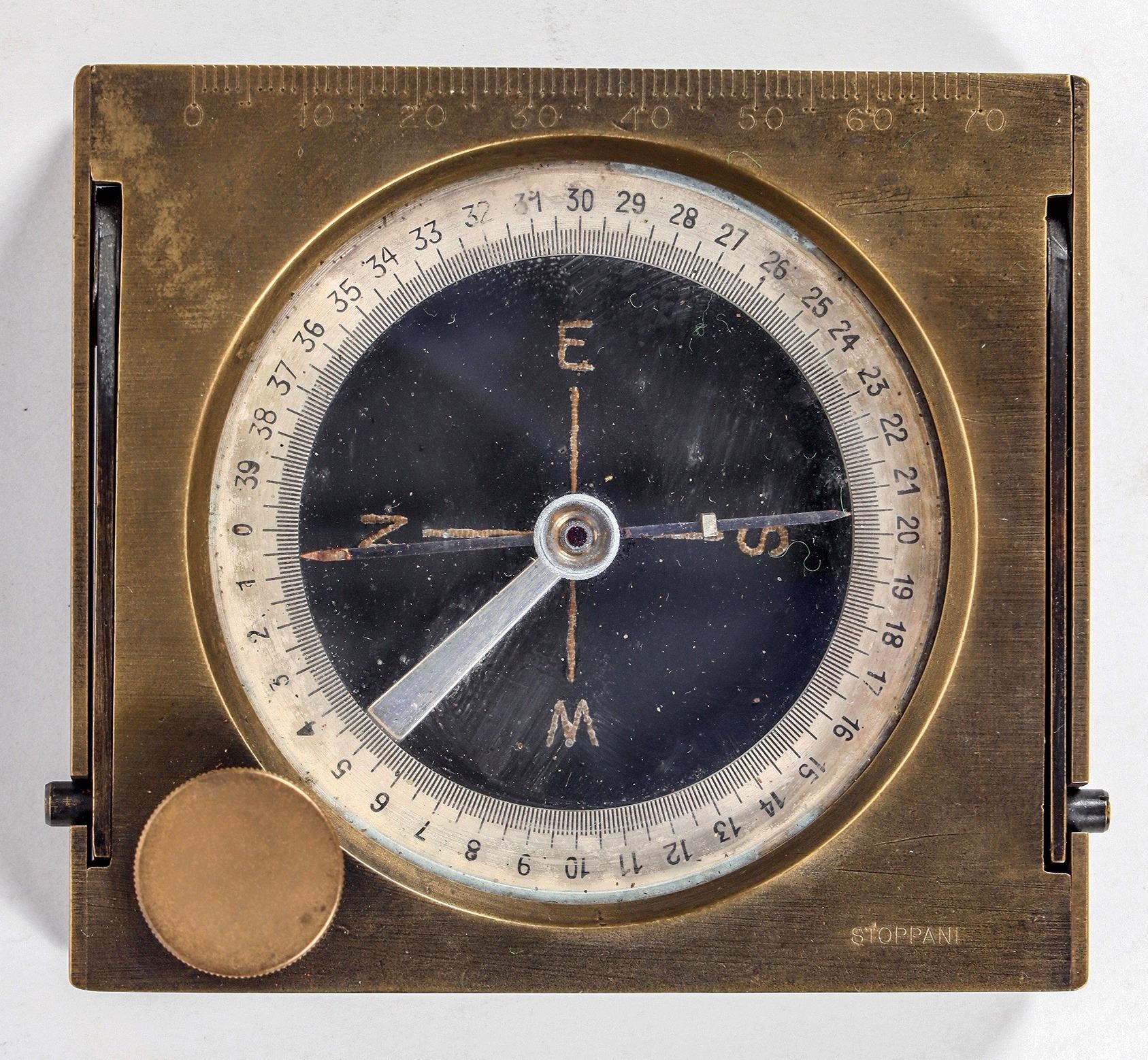 This is an A. Stoppani surveyor compass with a flat compass and original wood case. Vintage 1900 or earlier. Condition is very good. From the Popovich collection. Please see photo for details.