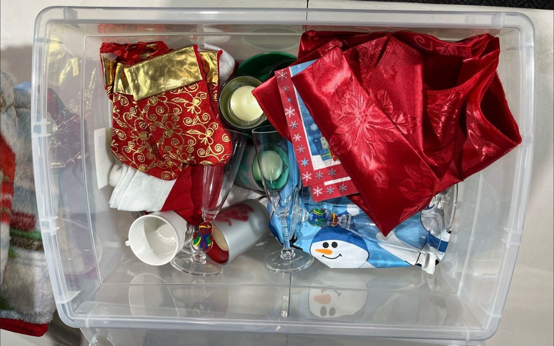 Storage Bin -All Contents Included Christmas Decorations and Blankets 23W15D12H