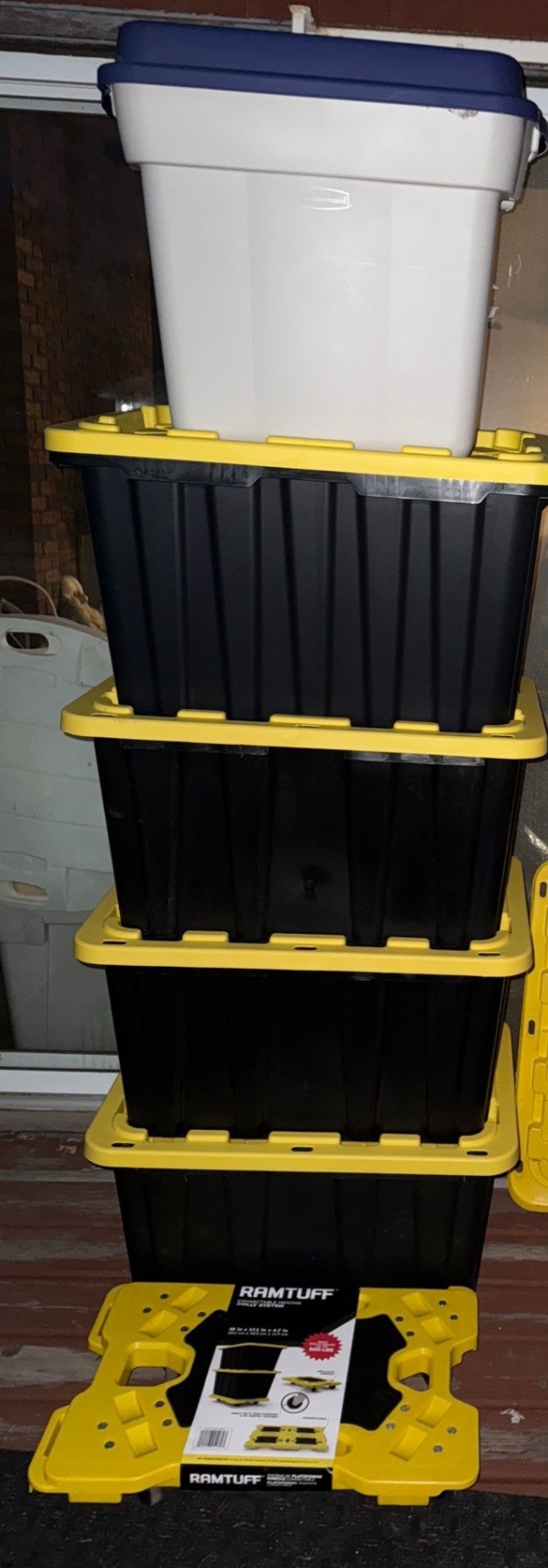 Storage Bins w/ Lids & Attachable Tote Trolly