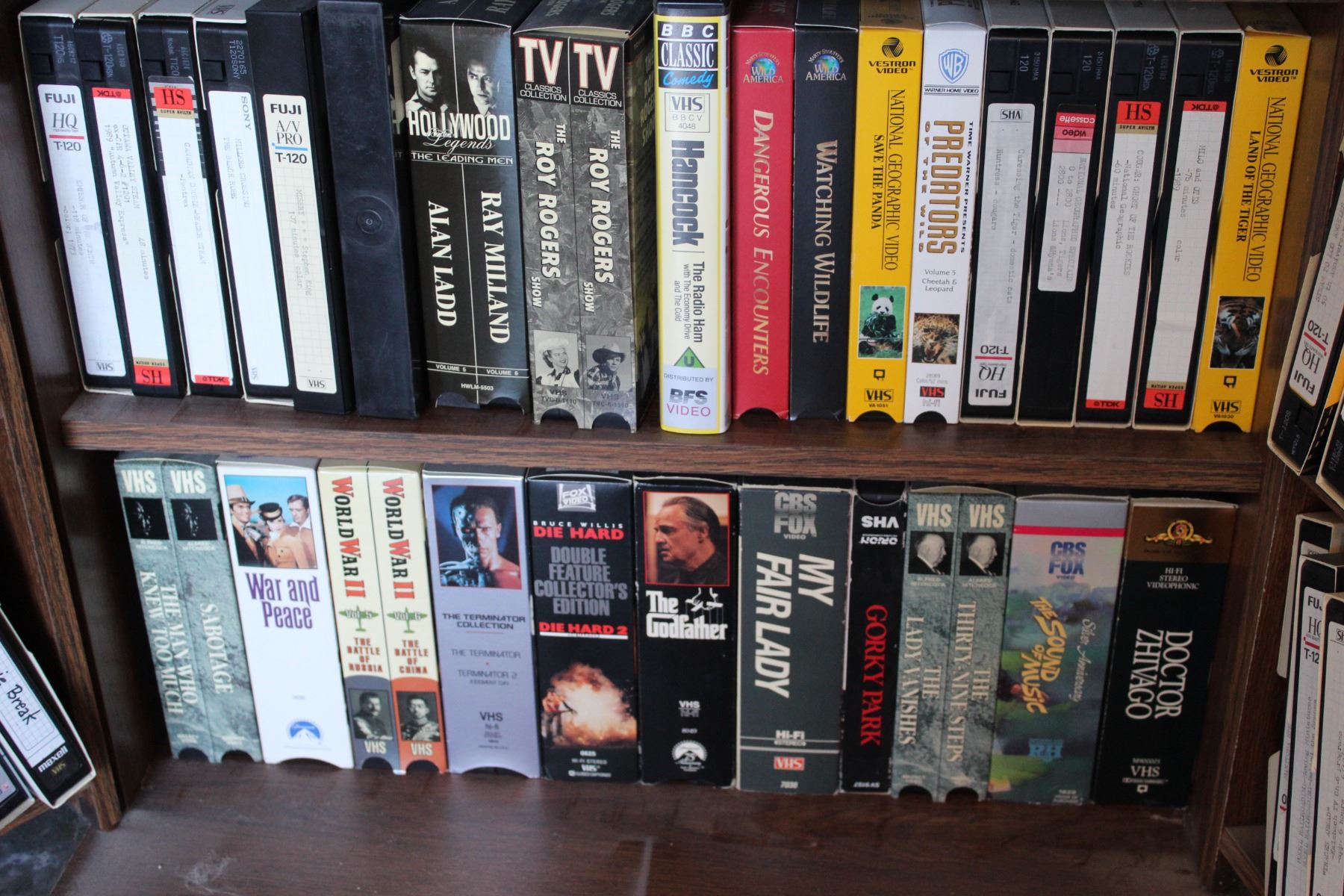 ** Storage Cabinet Filled with VHS Tapes - Three Stooges, Andy Griffin, Pacific Railroad