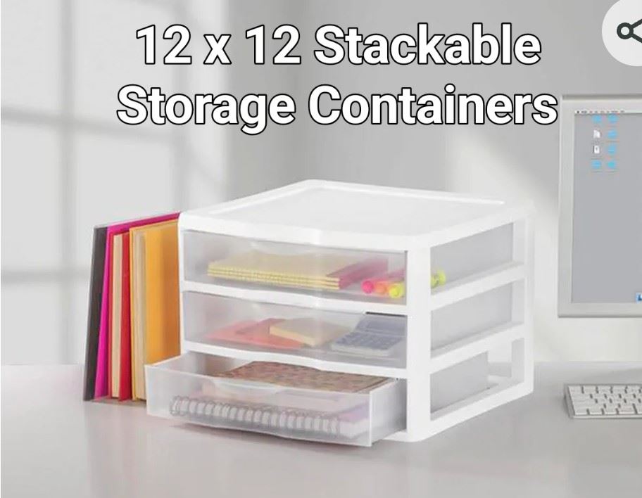 Clear modular containers, 12x12 inches, stackable design for easy organizing, new.