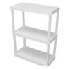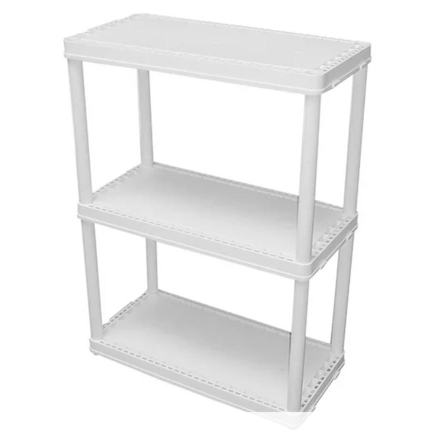 Three-tier plastic shelving unit, durable and easy to assemble, perfect for home and garage, new.